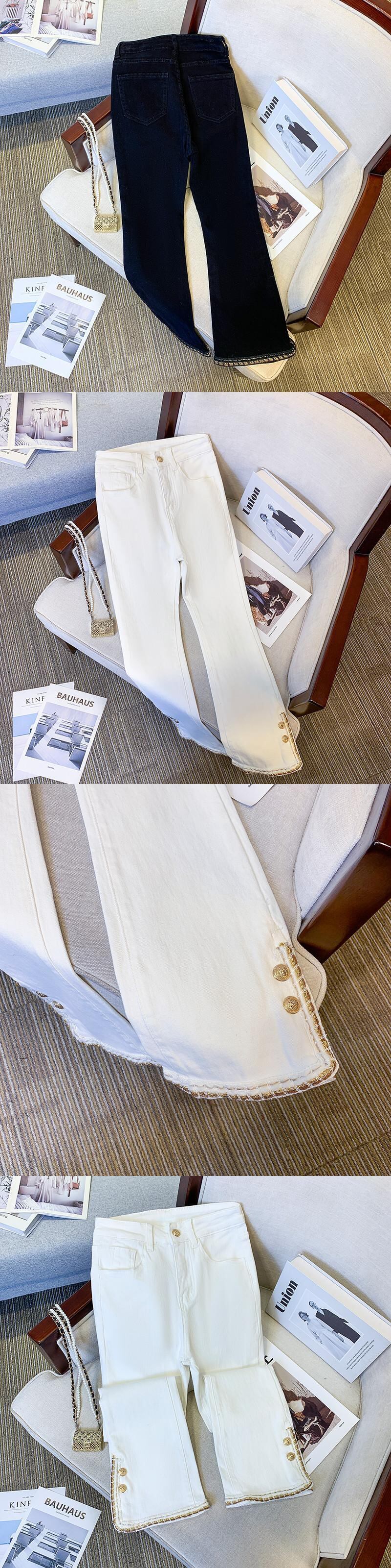 プラスサイズの婦人服 2023 春服脂肪姉妹新しいブレスト マイクロ フレア ファッション ハイ ウエスト黒スリット カジュアル パンツ ハイウェスト ブラック 大きめサイズ スプリング 春物 8884146299324044