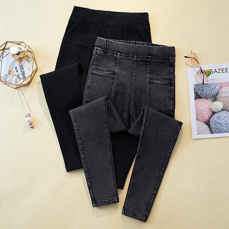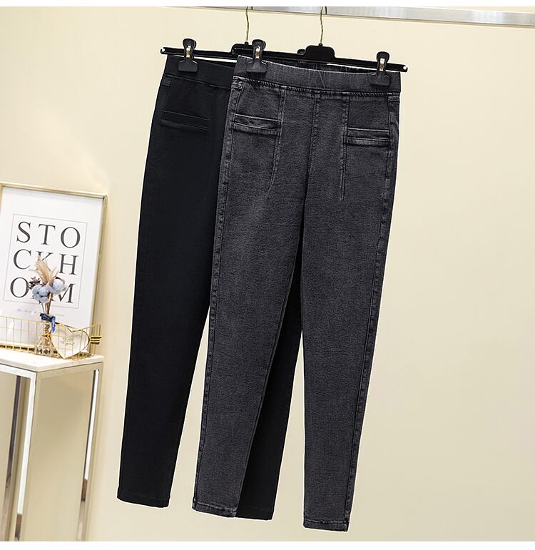 プラスサイズの婦人服 2023 ファットシスター春の新ストレッチ薄いズボン洗浄水 9 ポイントジーンズペンシルパンツ 大きめサイズ スプリング 春物 8884122556651959