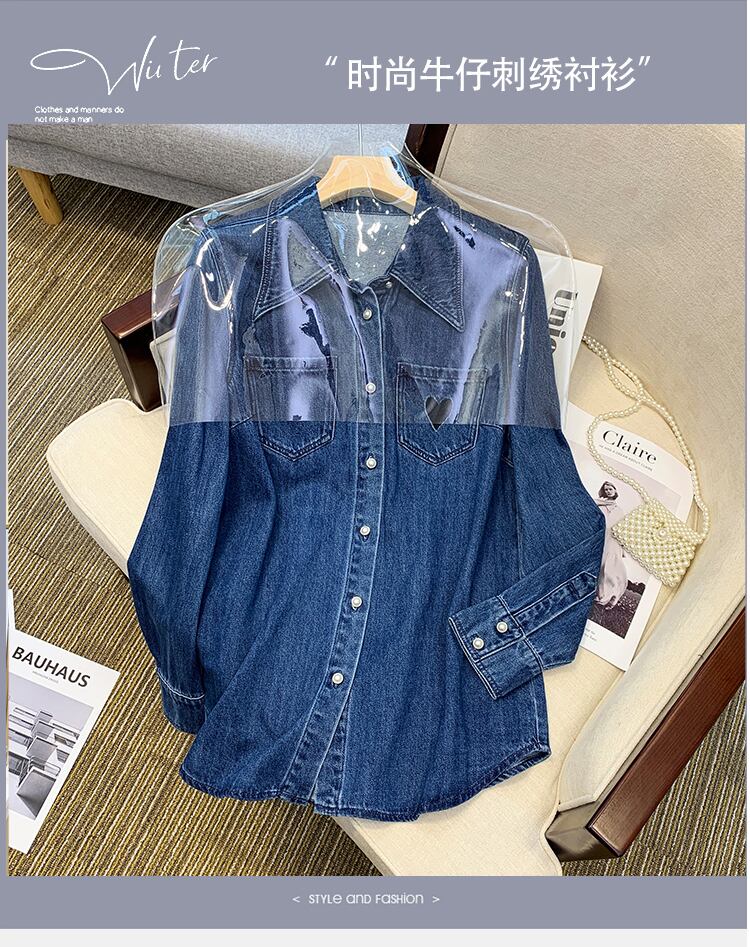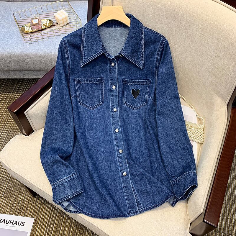 プラスサイズの婦人服 2023 ファットシスター春の新ウォッシュウォーターデニムシャツ緩いバージョンスリムラブジャケット女性 大きめサイズ スプリング 春物 8884132956985439
