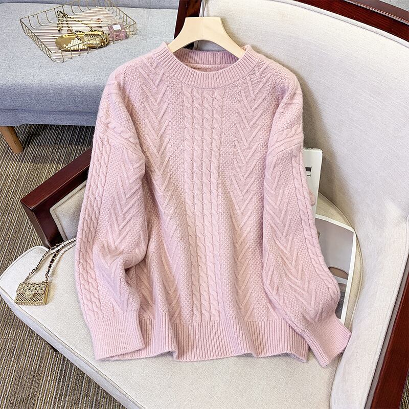 プラスサイズの婦人服 2023 ファットシスター春の新しい緩い甘いテクスチャパターン道路セーターオールマッチニットウェア女性 大きめサイズ 大人ガーリー スウィート キュート カジュアル スプリング 春物 8884174802298382