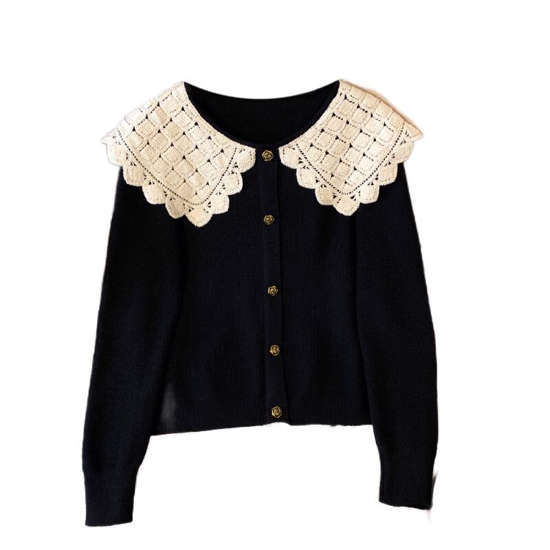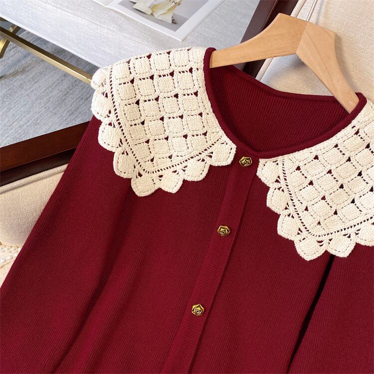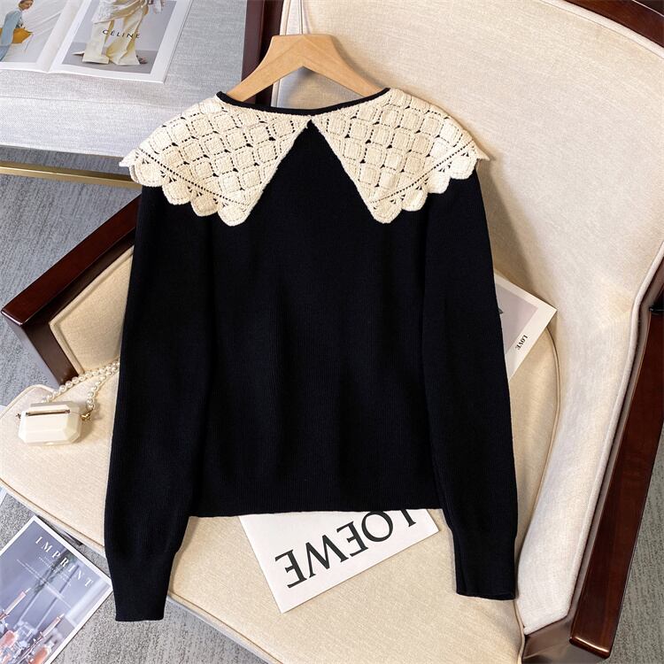 プラスサイズの婦人服 2023 春の新しいスタイルの太った姉妹バージョン緩い人形の襟のレトロなデザインのスリムなセーター 大きめサイズ スプリング 春物 8884123046029258