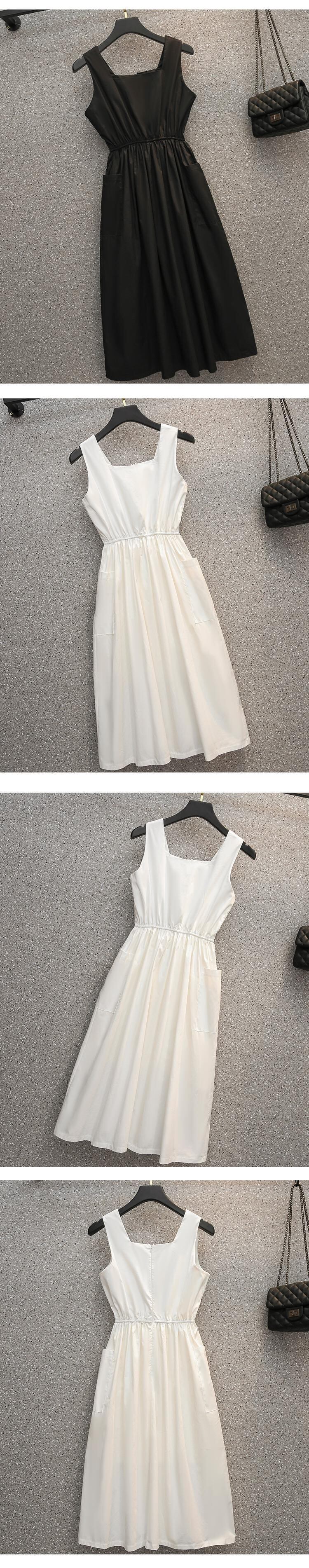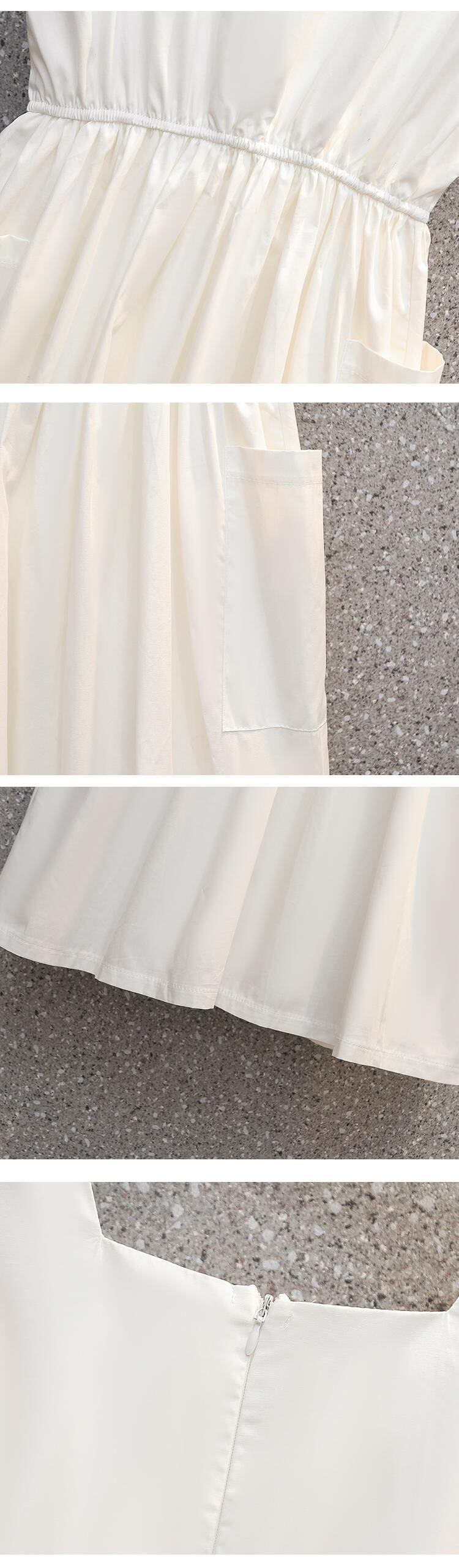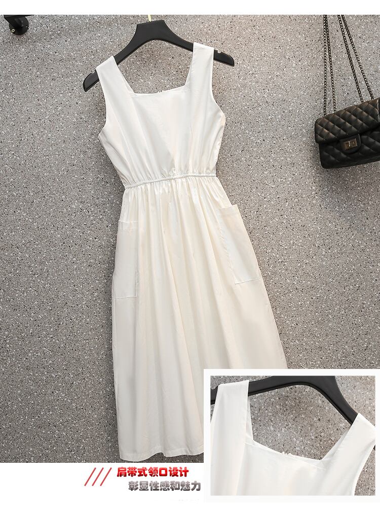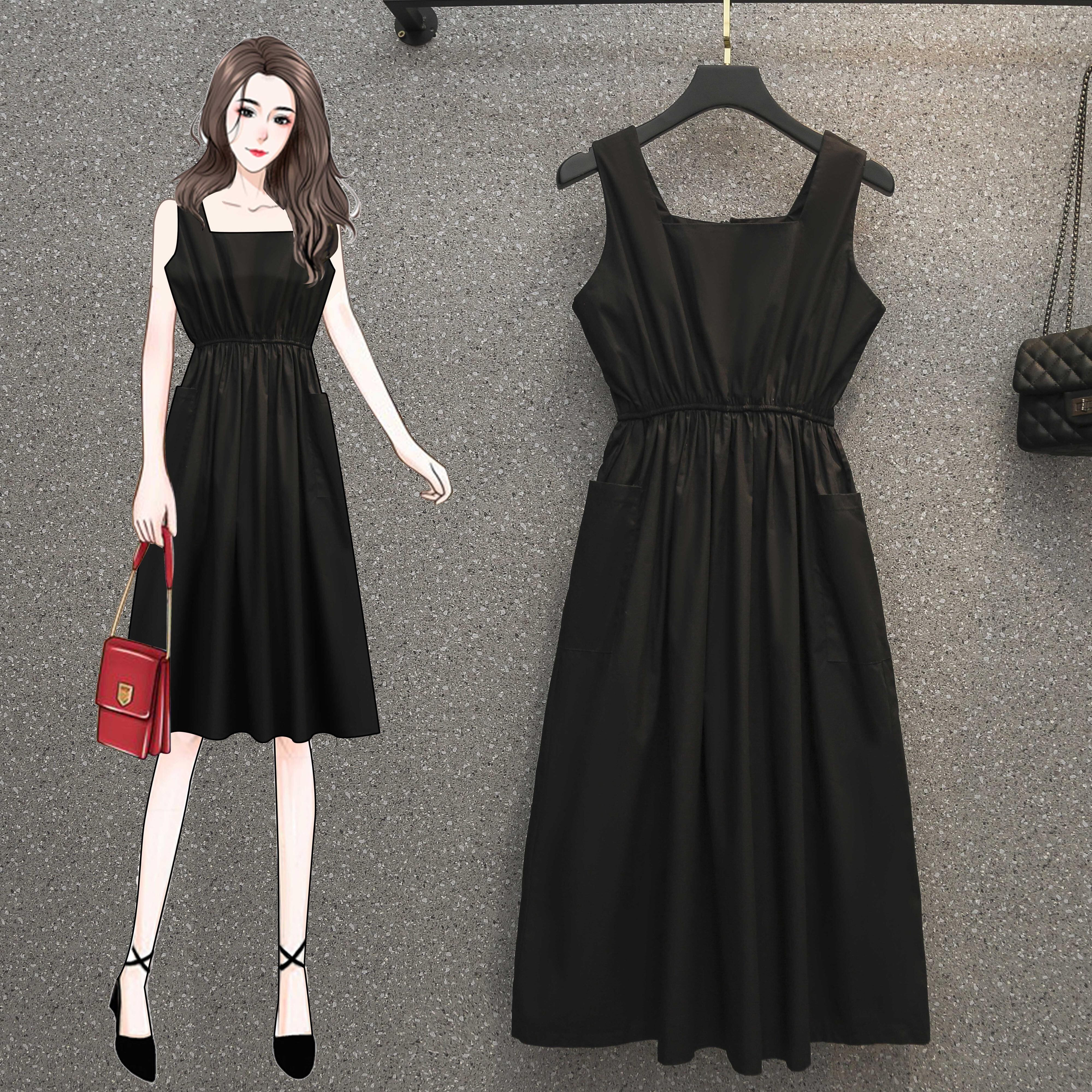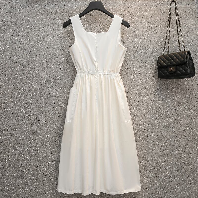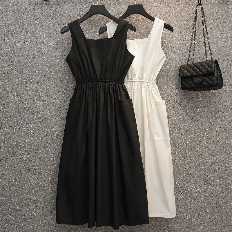 プラスサイズの婦人服 2023 夏の新しいファットシスターファッションオールマッチノースリーブスクエアカラースリムウエストドレス女性 大きめサイズ サマー 夏物 スクウェア 8884182724329303