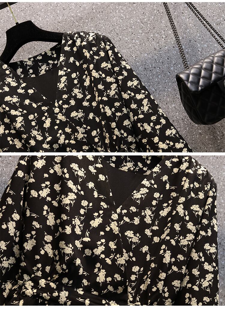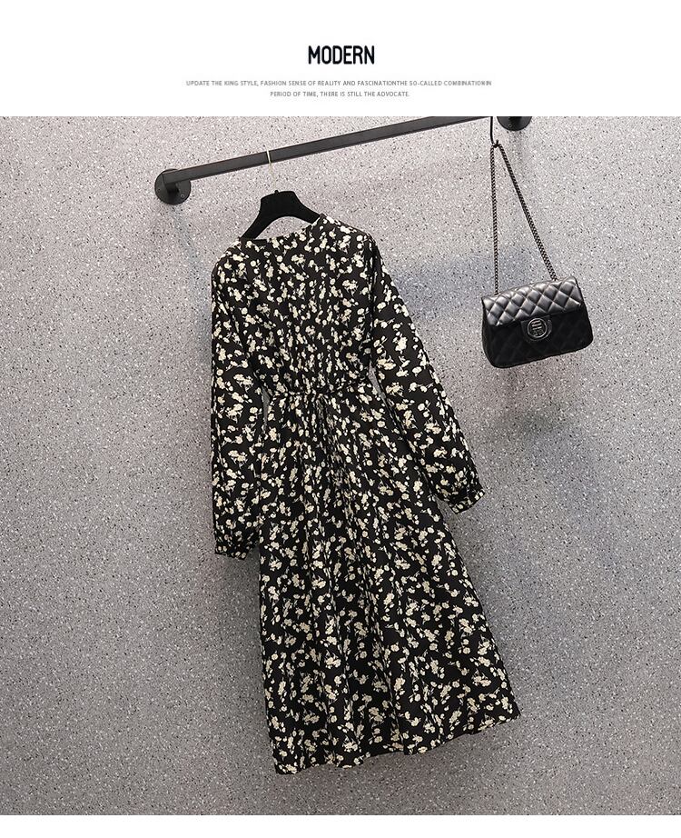 プラスサイズの婦人服2023春の新しいファットシスターファッションウエストフレンチVネックフローラル気質ドレス 大きめサイズ スプリング 春物 花柄 8884195702807291