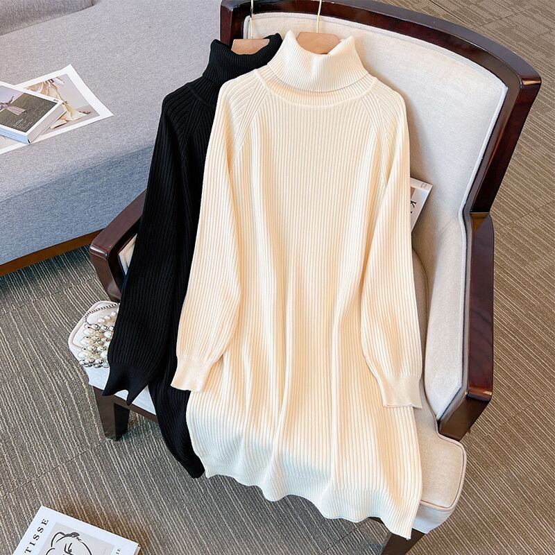大きいサイズの婦人服 2023 太った姉妹春の新しい外観スリム インナー ハイカラー ニット セーター セーター ボトムス ドレス 大きめサイズ スプリング 春物 8884172794944673