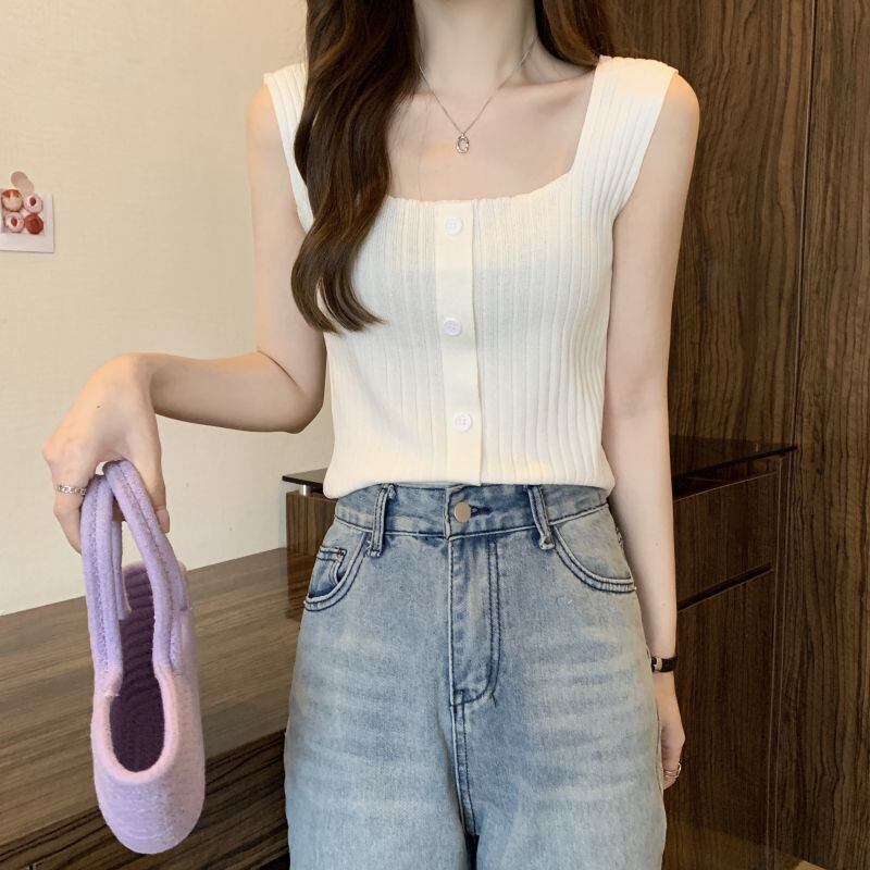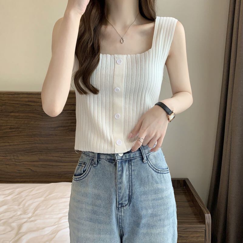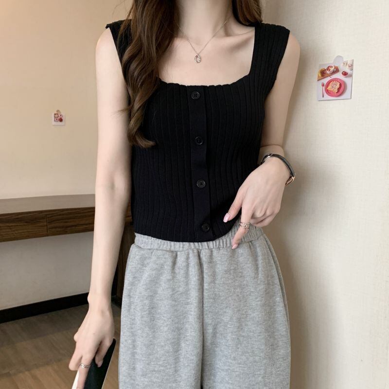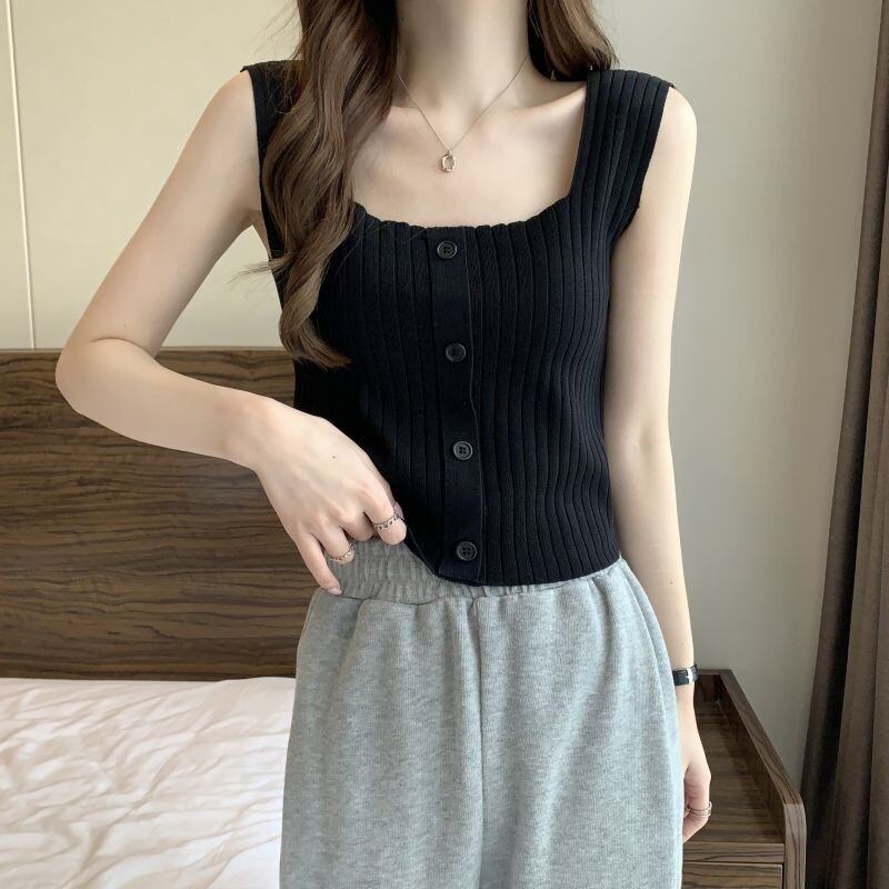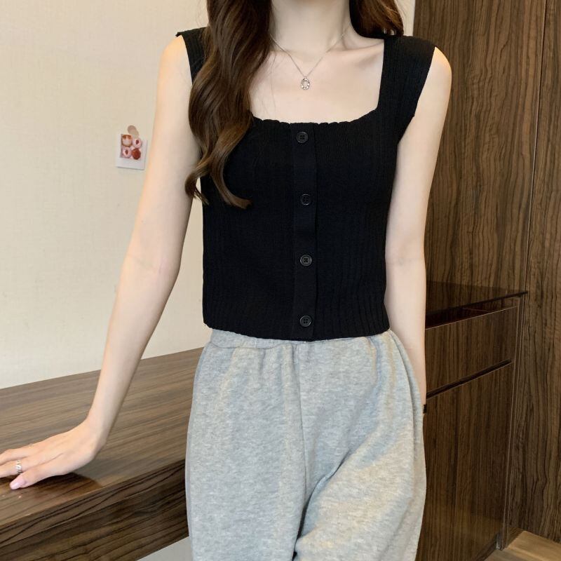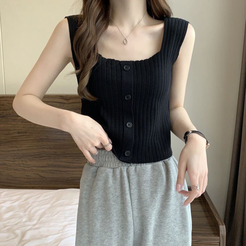 大きいサイズの婦人服 2023 トレンディな女性の夏の新しいファット シスター デザイン センス ニッチな小さなサスペンダー スクエア カラー トップス ベストを着て 大きめサイズ サマー 夏物 スクウェア 8884158696204219