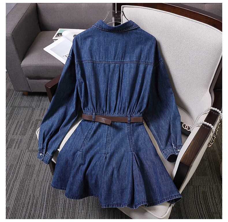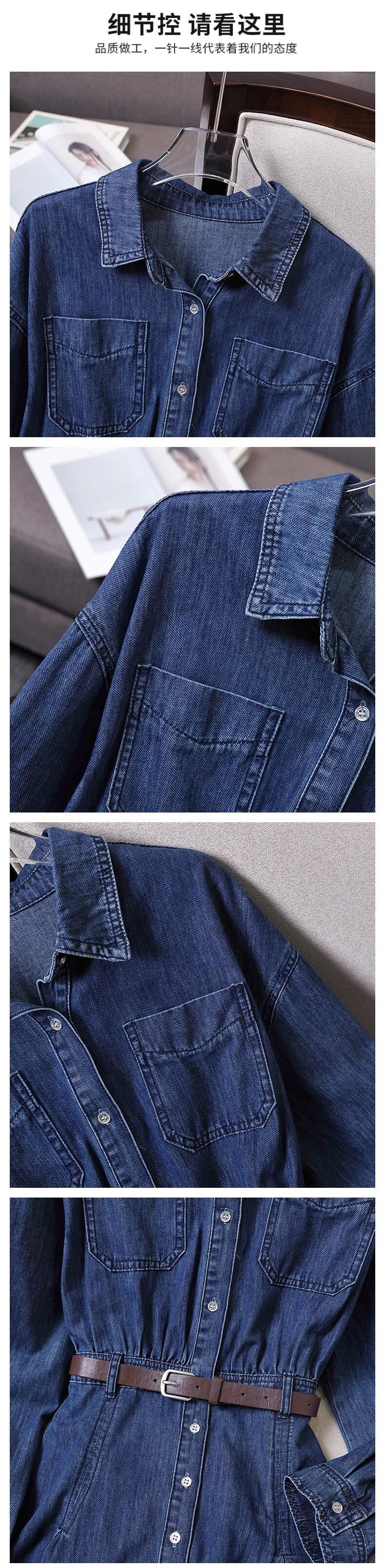 プラスサイズの婦人服 2023 ファットシスター春の新ファッション年齢減少ウエスト痩身長袖デニムシャツドレス ロング 大きめサイズ スプリング 春物 8884196461517750