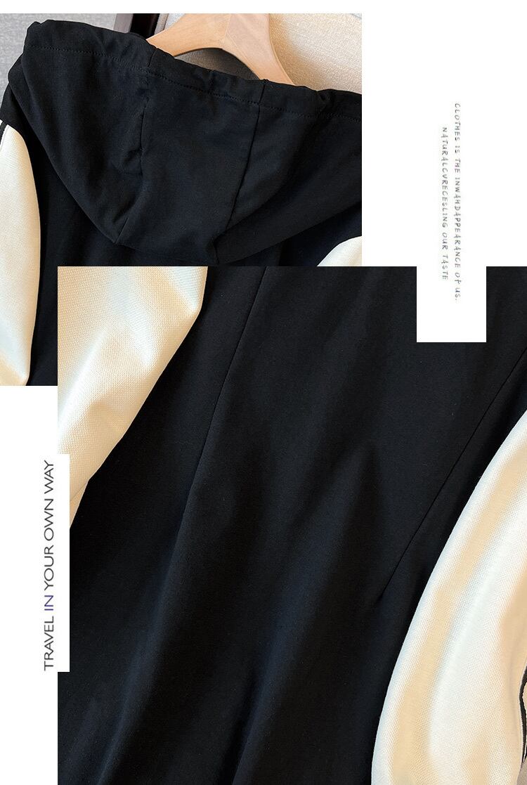 プラスサイズの婦人服 2023 春服脂肪姉妹新しいカラーブロッキングジッパーフード付きセータースリムフェイクツーピースドレス 大きめサイズ スプリング 春物 8884195154587809