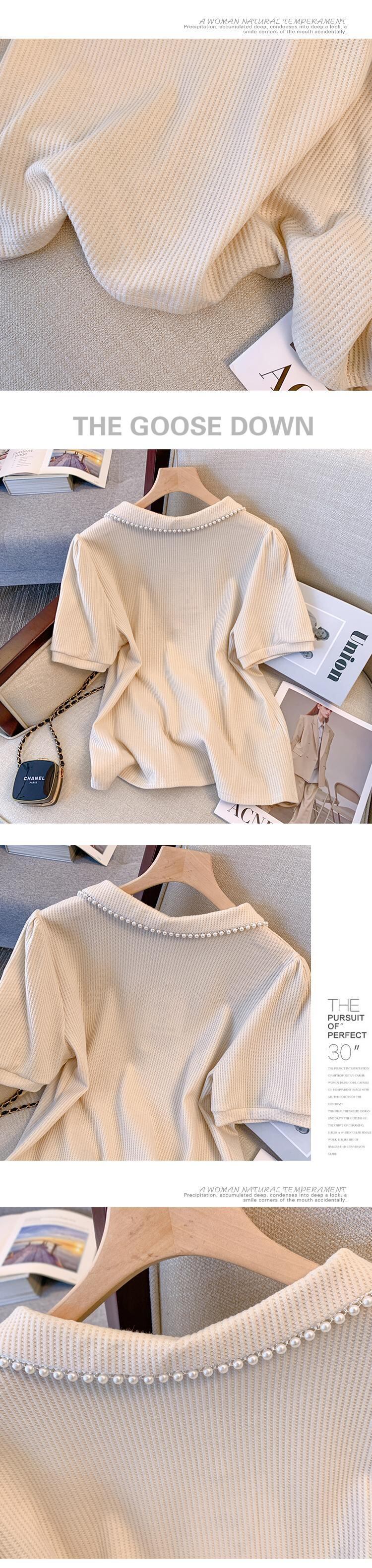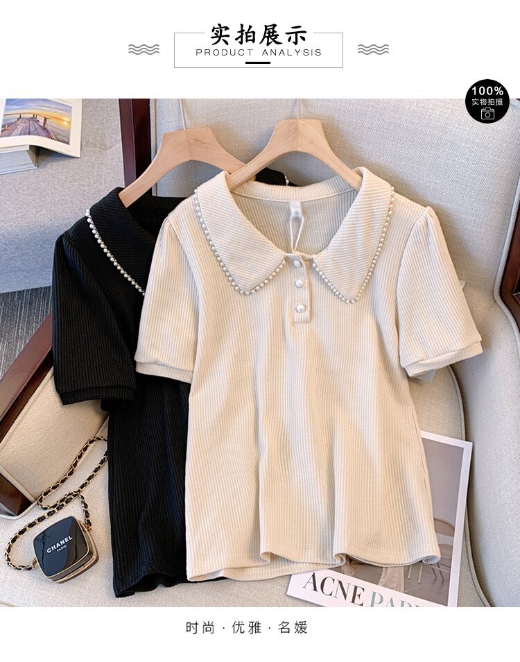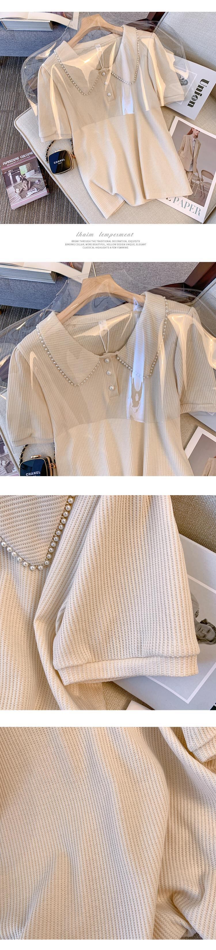 プラスサイズの婦人服 2023 脂肪姉妹夏の新ファッションニットウェアカバー股痩身オールマッチ半袖トップ女性 大きめサイズ サマー 夏物 8884178540478253