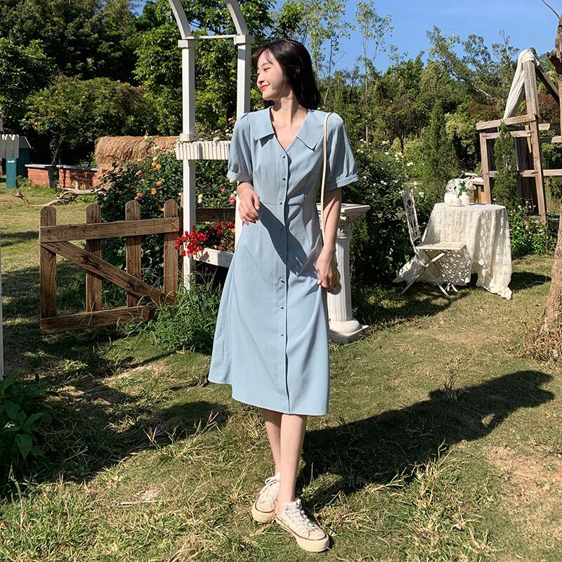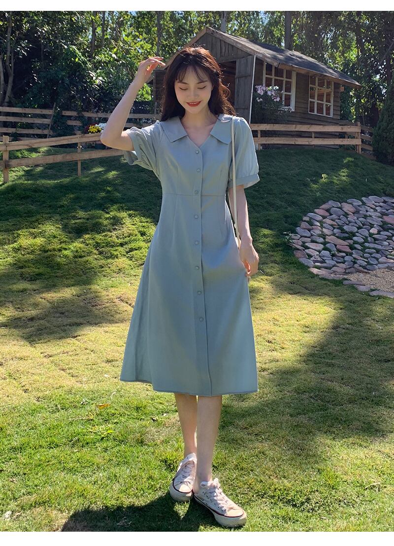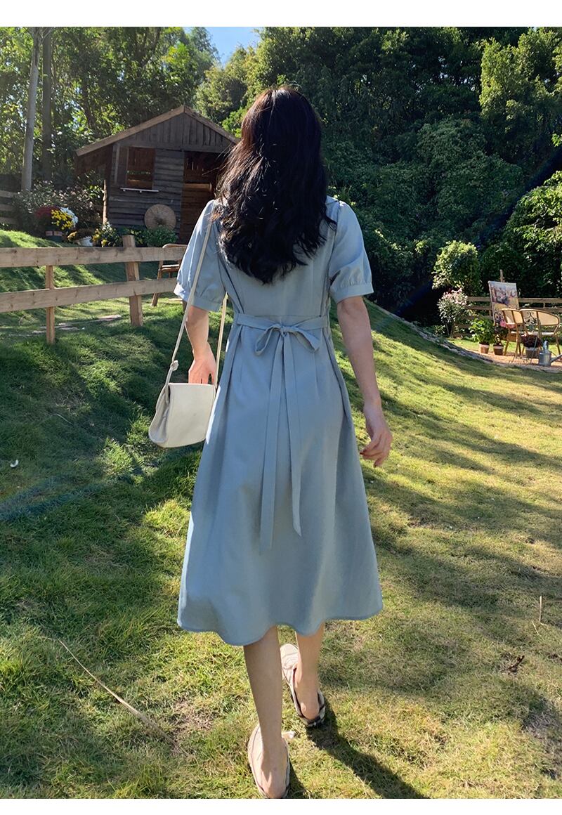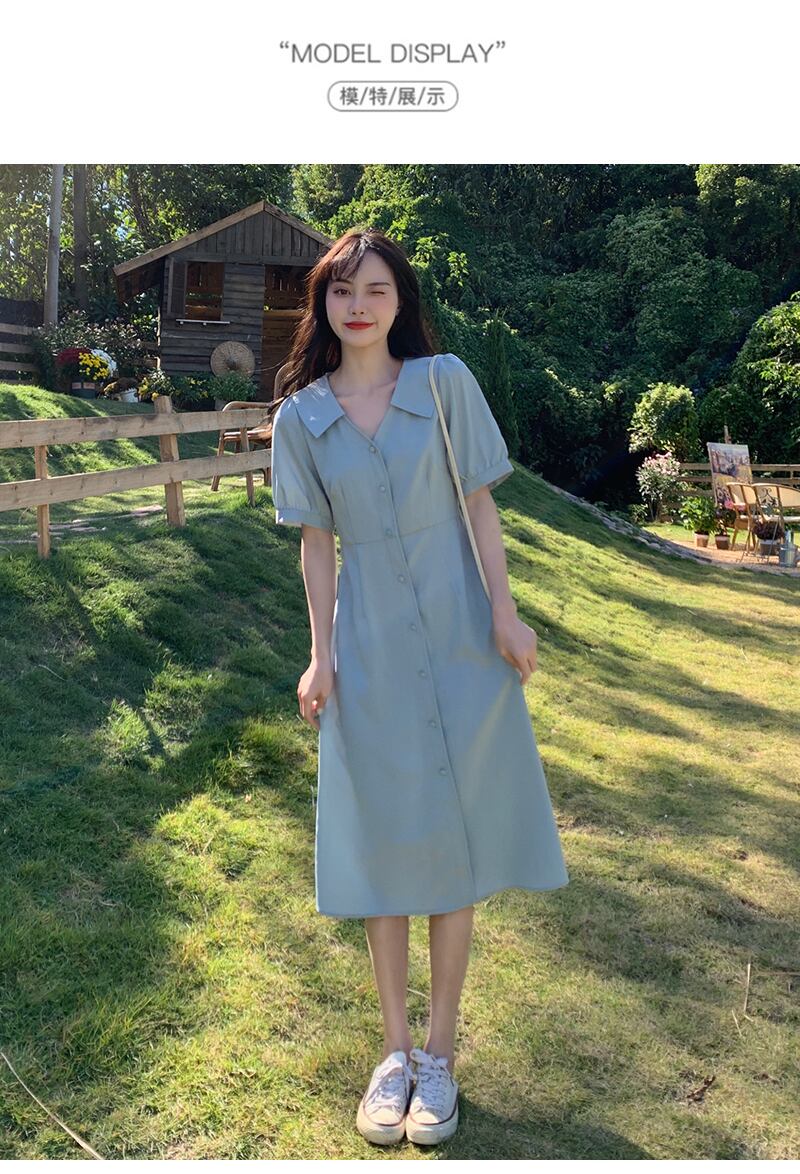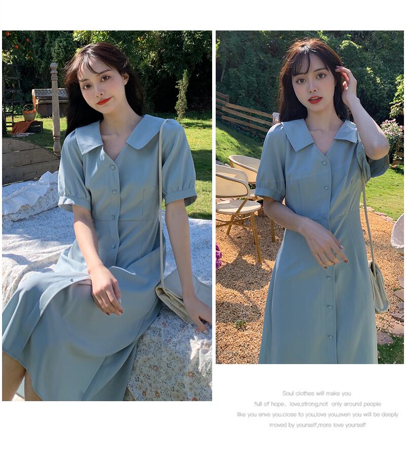 プラスサイズの婦人服 2023 夏の新しい太った姉妹年齢を減らす気質無地フレンチ カジュアル肉カバー ドレス女性 大きめサイズ サマー 夏物 ソリッドカラー 8884172250414495
