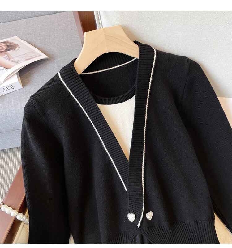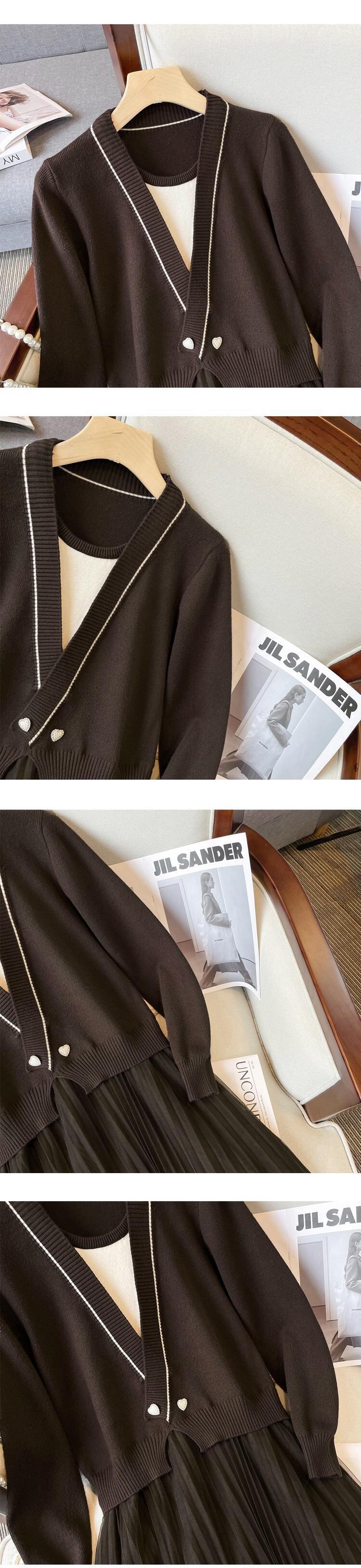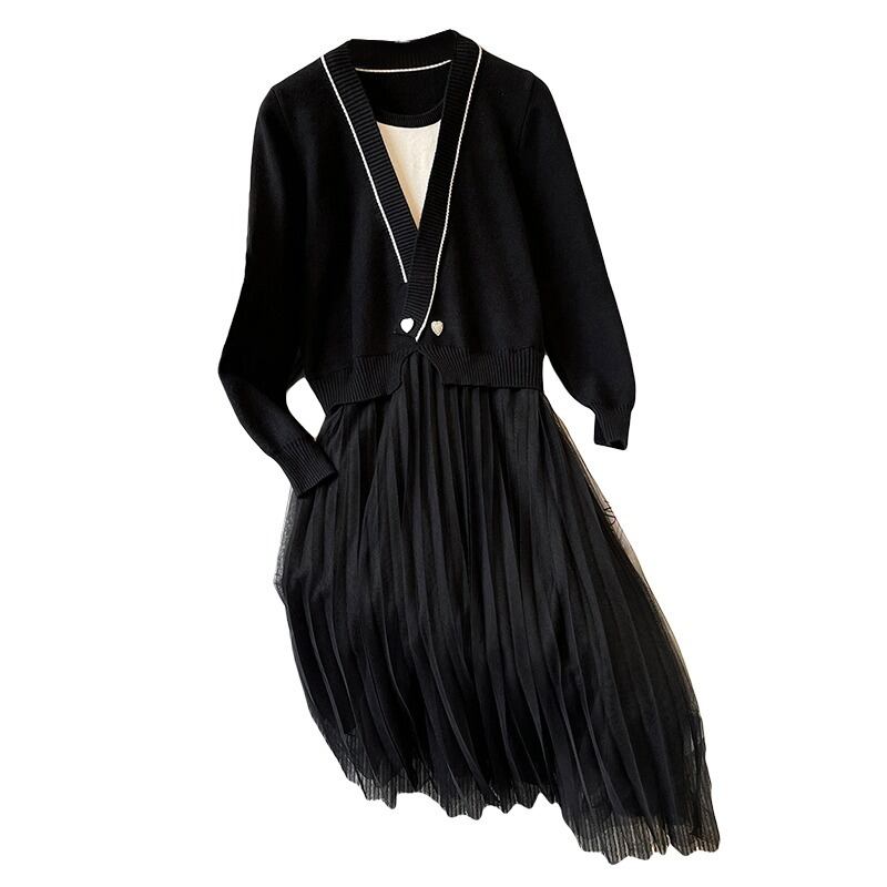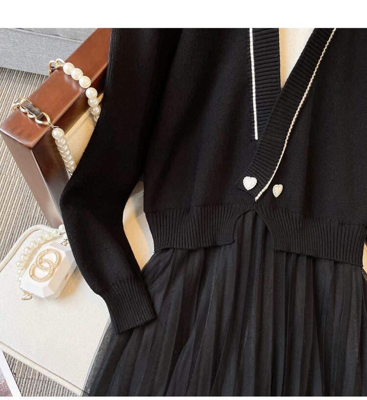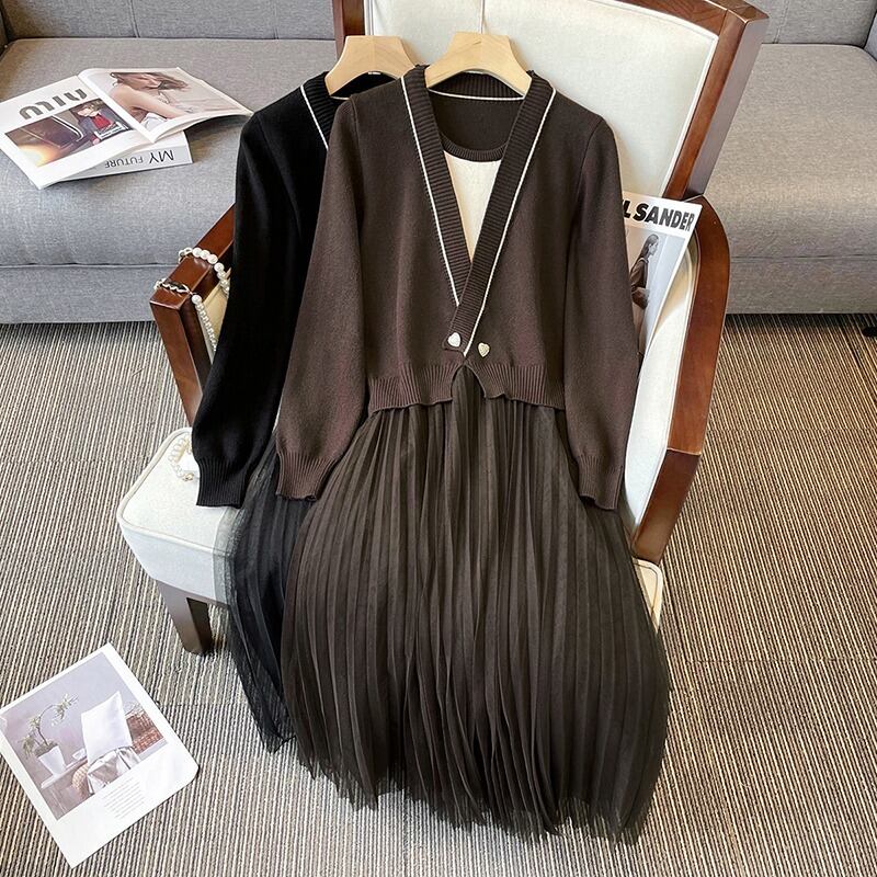 プラスサイズの婦人服 2023 トレンディな女性の春の新しいファットシスターフェイクツーピースステッチニットメッシュオールマッチ薄いドレス 大きめサイズ スプリング 春物 8884112060289906