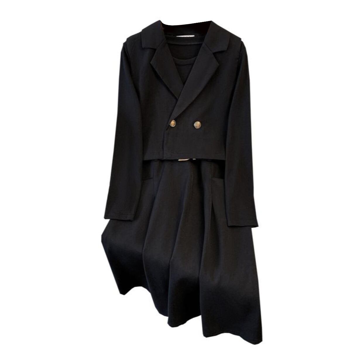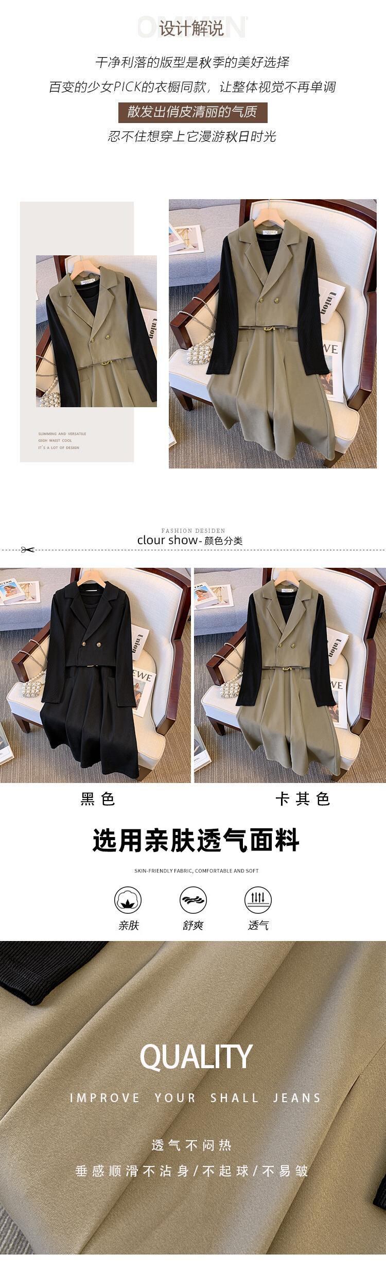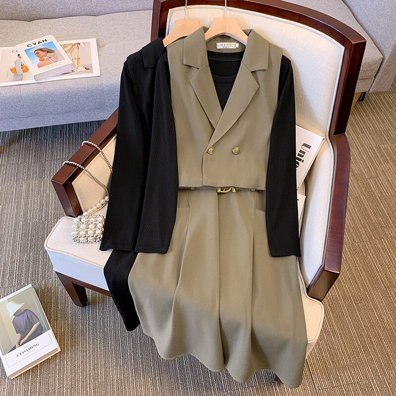 プラスサイズの婦人服 2023 春脂肪姉妹新しいファッション気質ベスト長袖スプライシングドレスツーピーススーツ ロング 大きめサイズ スプリング 春物 8884134141231903