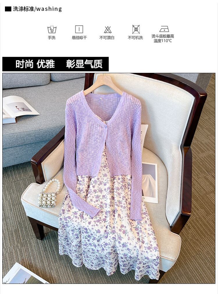 大きいサイズの婦人服2023春服ファットシスターズ新作シフォン花柄サスペンダードレス日焼け止めカーディガン2点セット 大きめサイズ スプリング 春物 8884195716876583