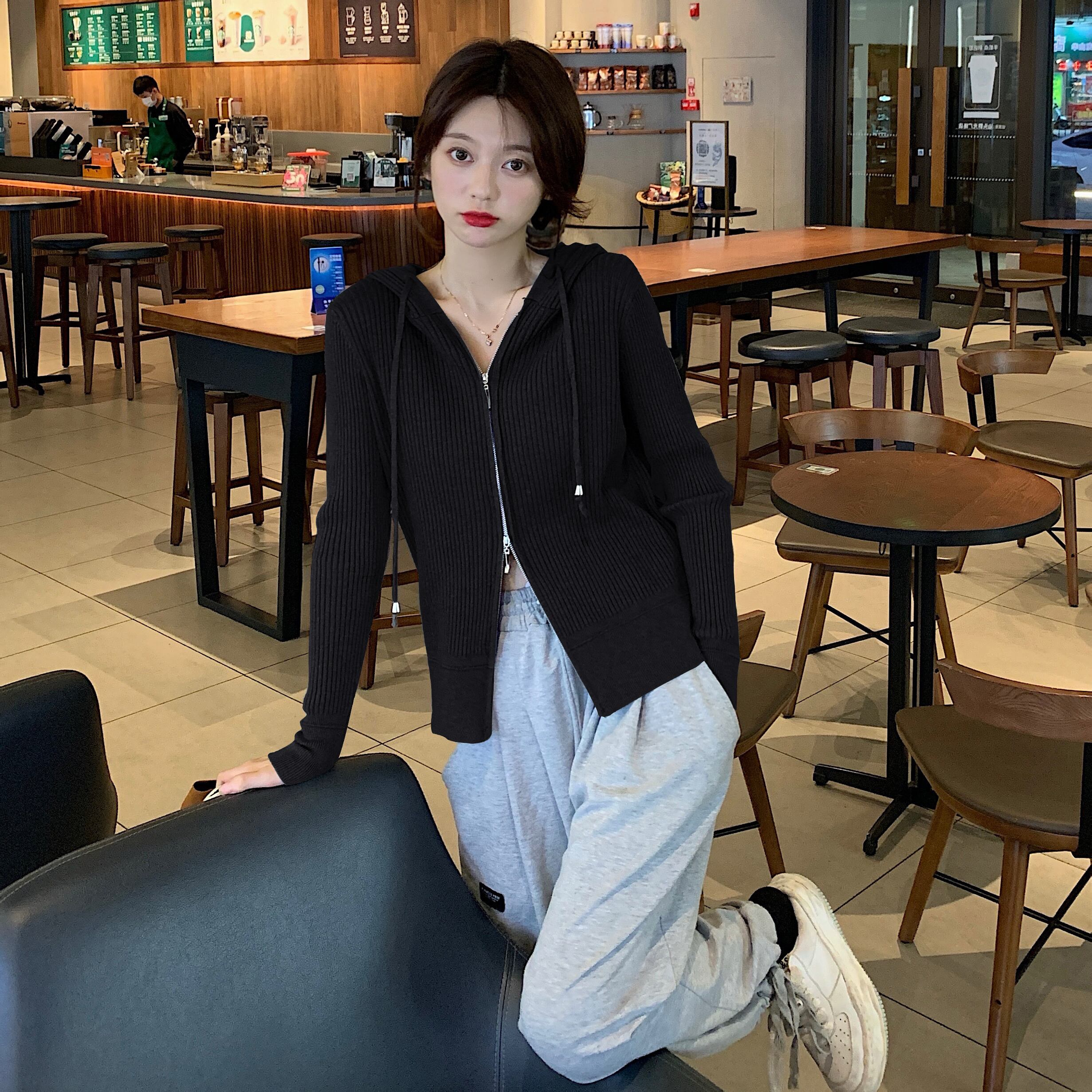 プラスサイズの婦人服 2023 春服ファットシスターズ新ニットセータートップデザインカーディガンジッパーセータージャケット 大きめサイズ スプリング 春物 888413851475395