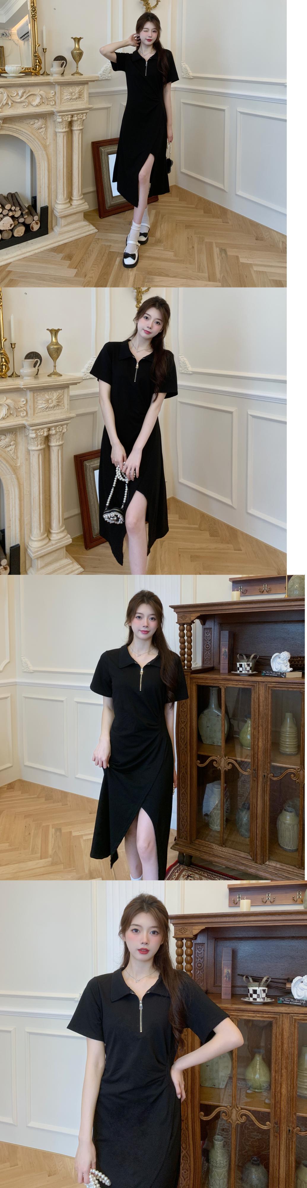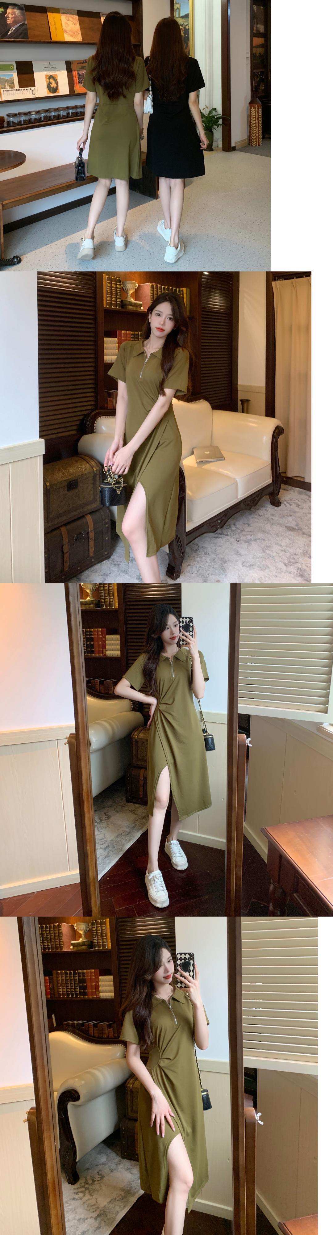 プラスサイズの婦人服 2023 新しい夏服脂肪姉妹スリムウエストポロ襟ドレスロングとショート A ラインスカート 大きめサイズ サマー 夏物 Aライン 8884165606234616