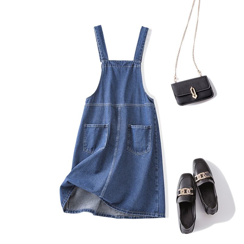 プラスサイズの婦人服 2023 春服脂肪姉妹新バージョン緩いスリムレトロな年齢を減らすデニムサスペンダースカート女性 大きめサイズ スプリング 春物 8884193141543678