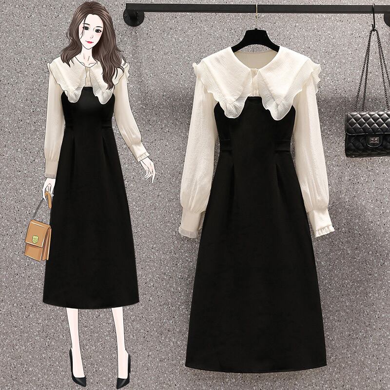 大きいサイズの婦人服 2023 春の新しいスタイルのファット シスターズと eign スタイル、年齢を減らして痩身、ミドル丈の人形の襟のドレスの女性 大きめサイズ スプリング 春物 8884114886955680