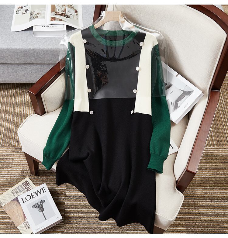 大きいサイズの婦人服 2023 トレンディな女性の春の新しいスタイルの太った姉妹のヒットカラーのカジュアルなニットのスリムな気質のボトミングドレストレンディ 大きめサイズ スプリング 春物 8884125024679523