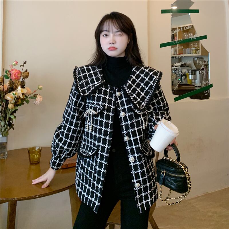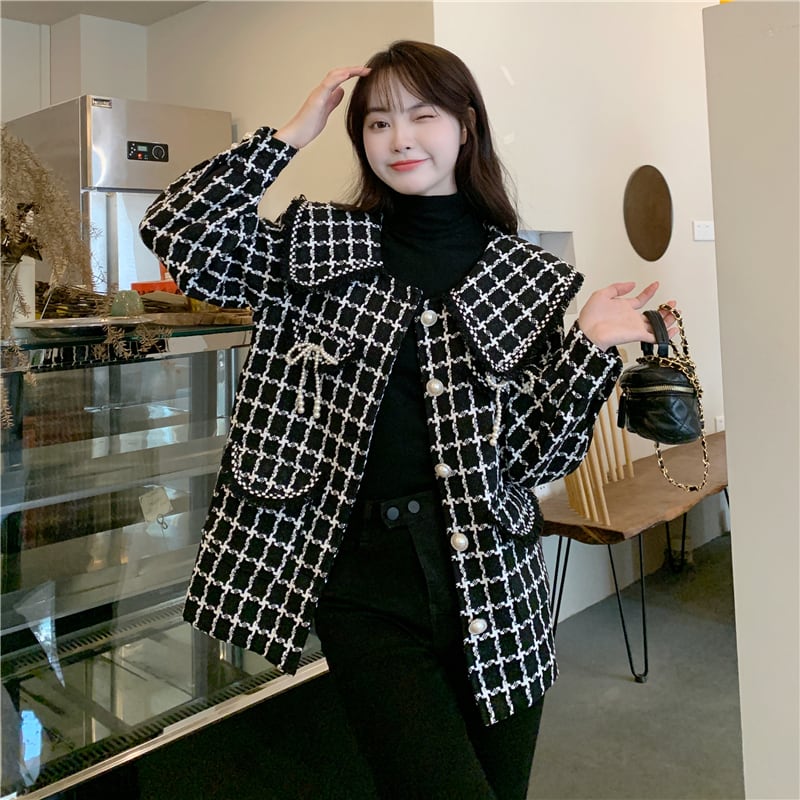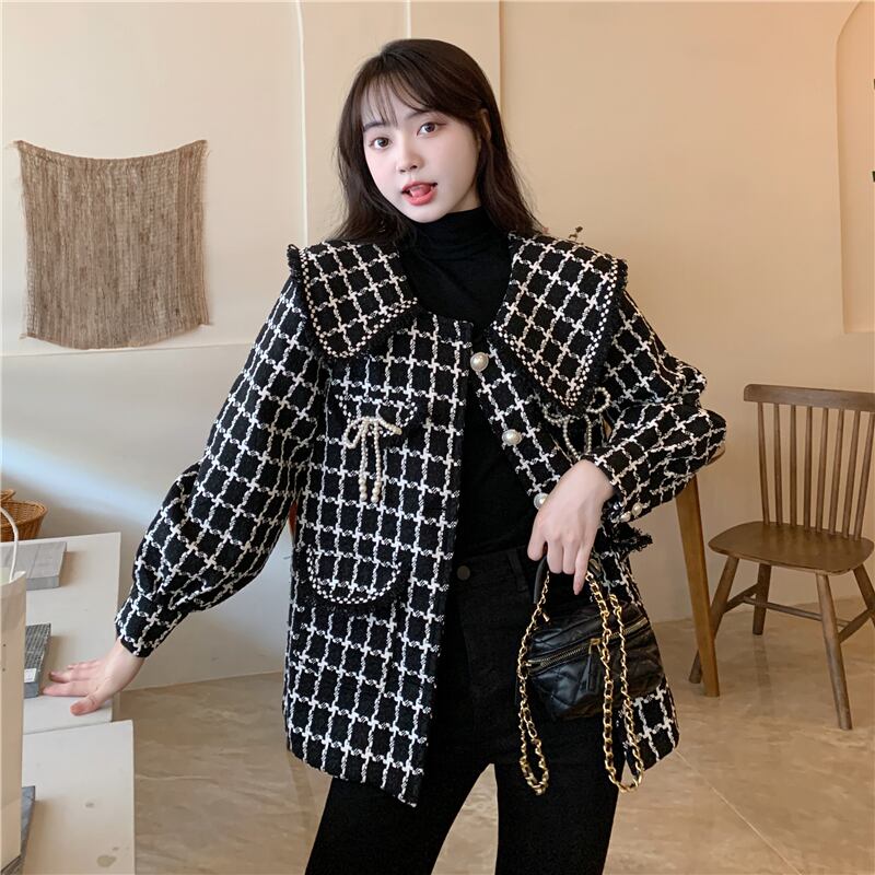 大きいサイズの婦人服2023年春服ファットシスターズの新しいスタイルのeignスタイルのオールマッチルーズで薄いチェック柄のウールのコート年齢の減少 大きめサイズ スプリング 春物 8884134781282259