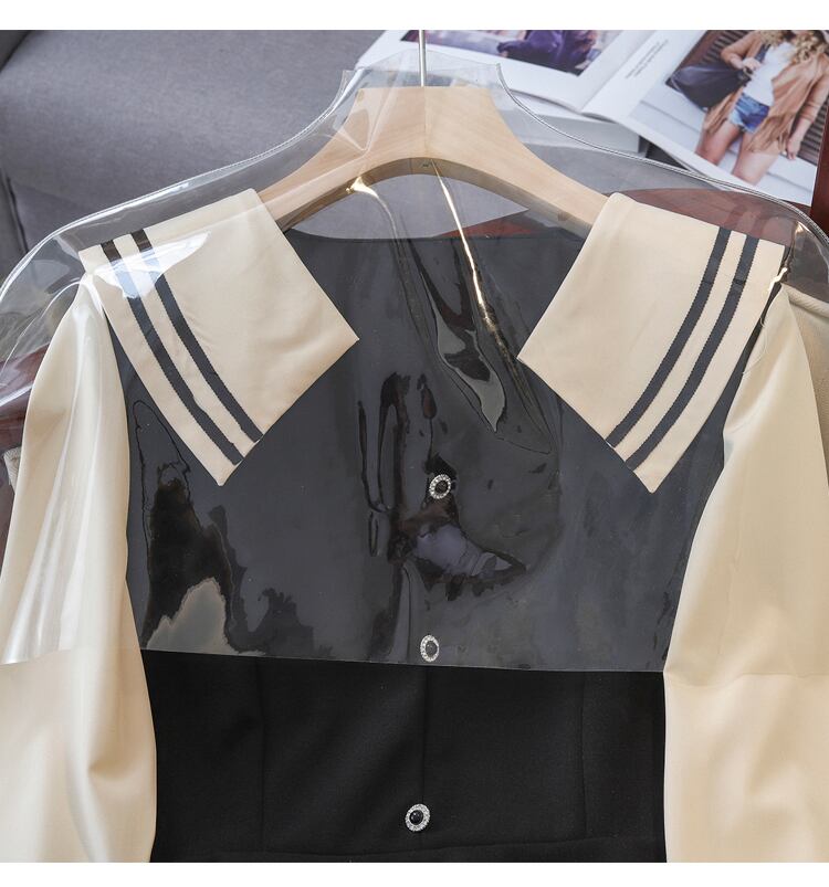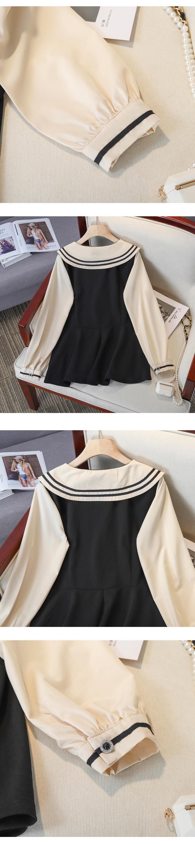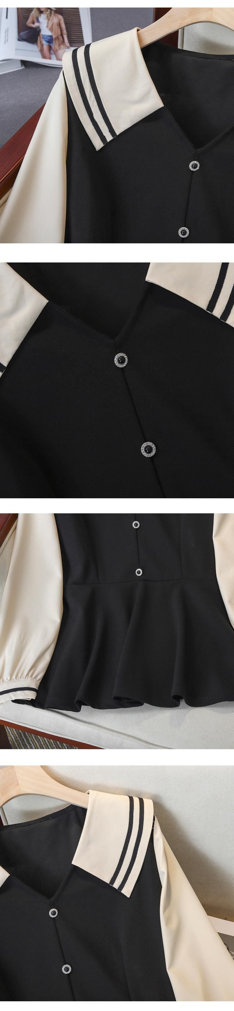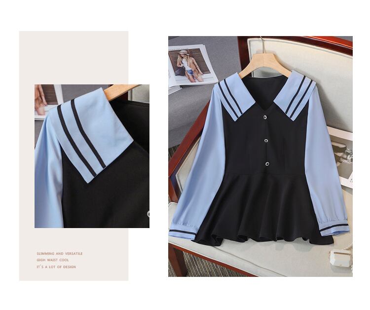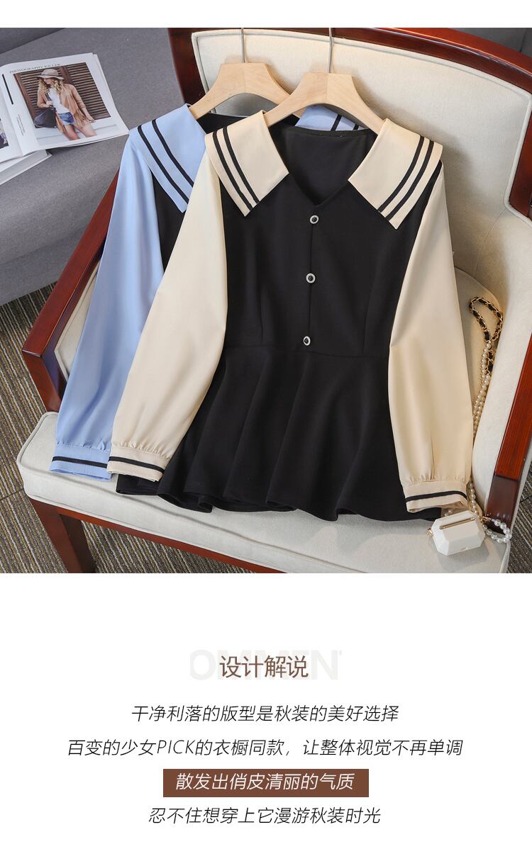 プラスサイズの婦人服 2023 ファットシスター春の新色コントラストスプライシング人形の襟年齢を減らす年齢カバー腹ファッションオールマッチシャツ 大きめサイズ スプリング 春物 8884126179208119