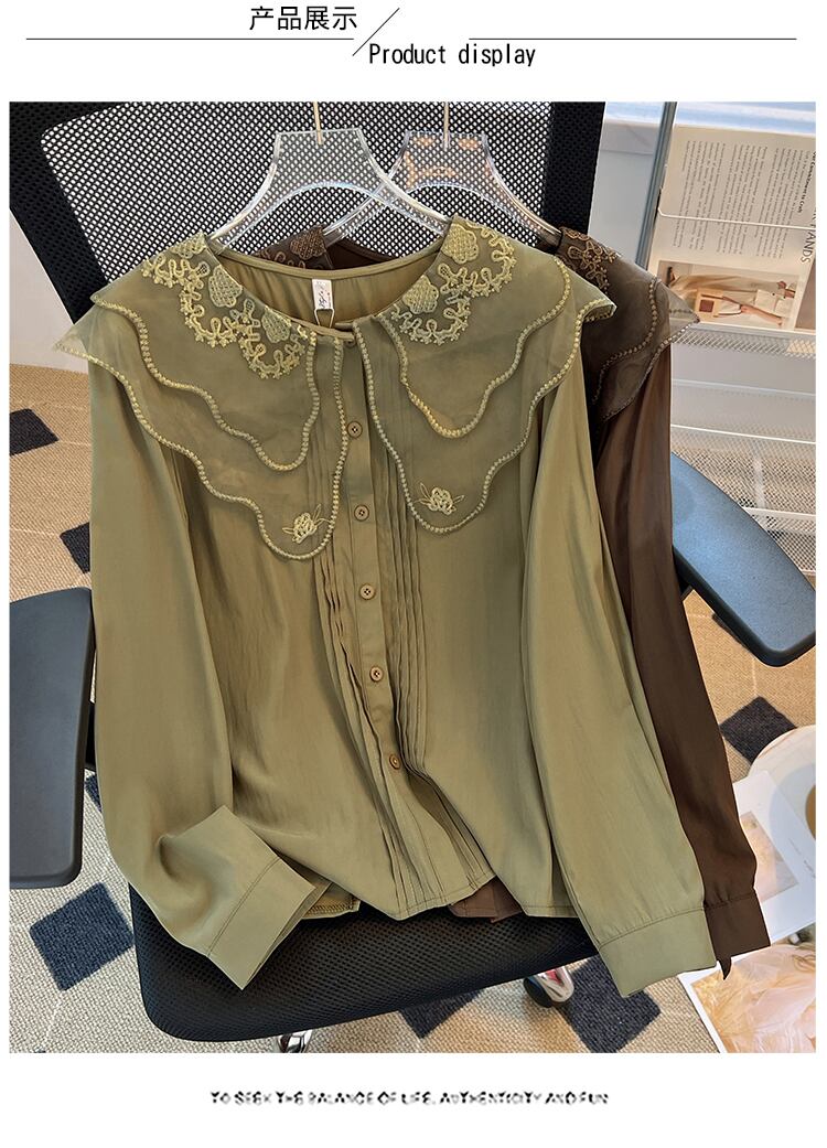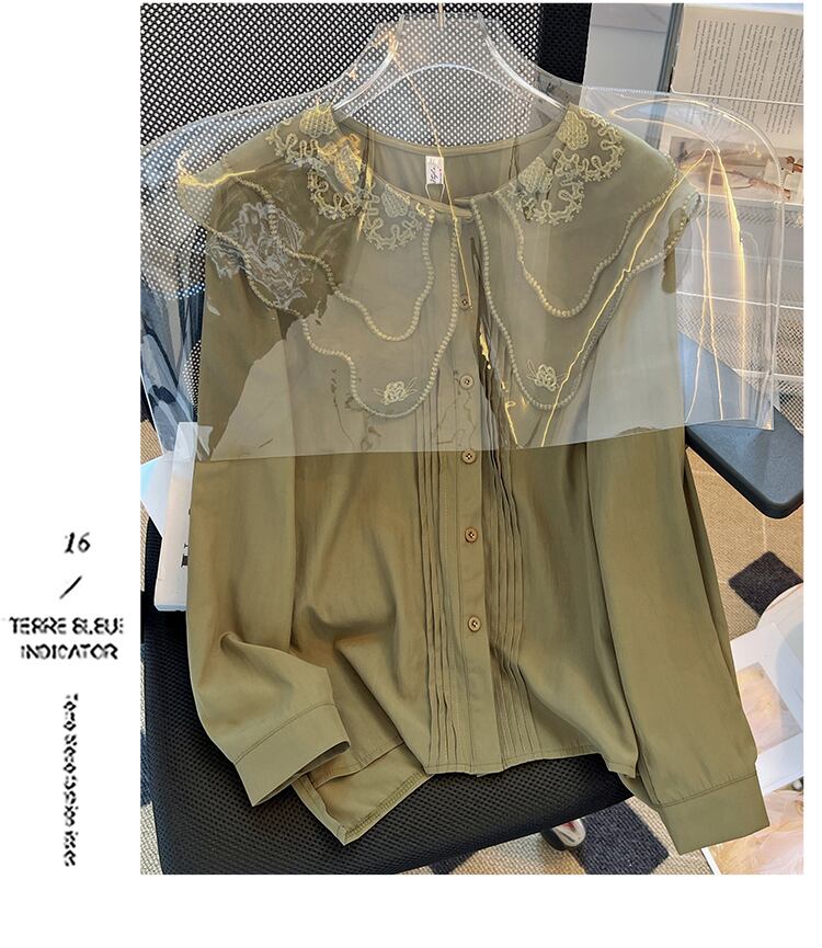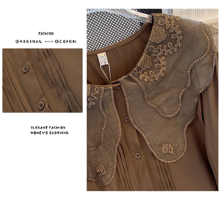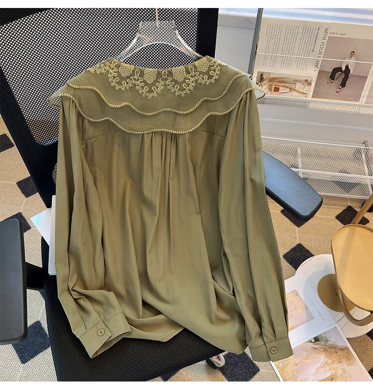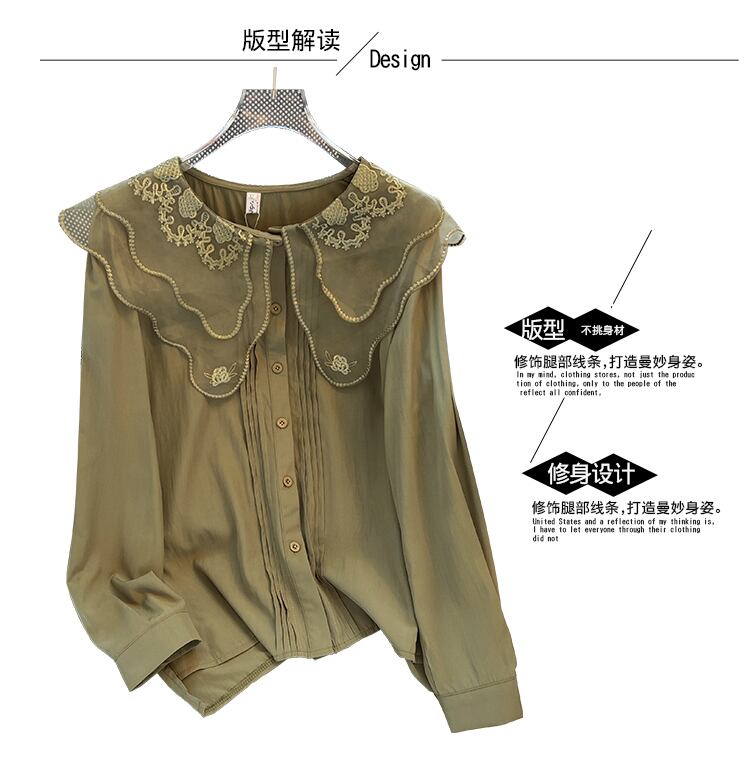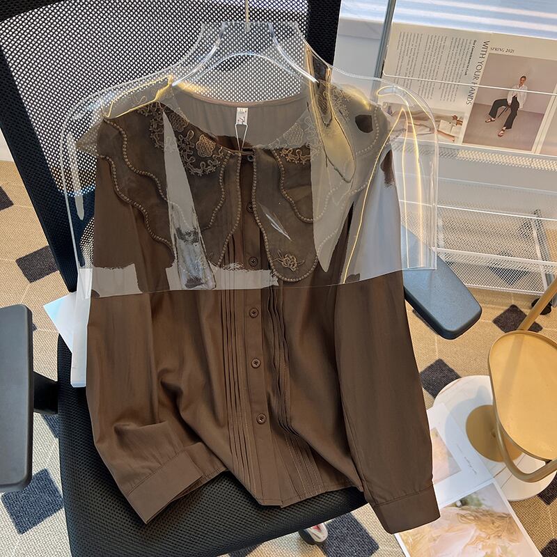 プラスサイズの婦人服 2023 ファットシスター春の新しい甘いデザインセンスニッチシャツカジュアル底入れトップ女性 大きめサイズ 大人ガーリー スウィート キュート スプリング 春物 8884128276187950