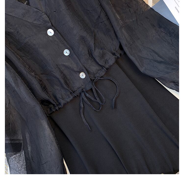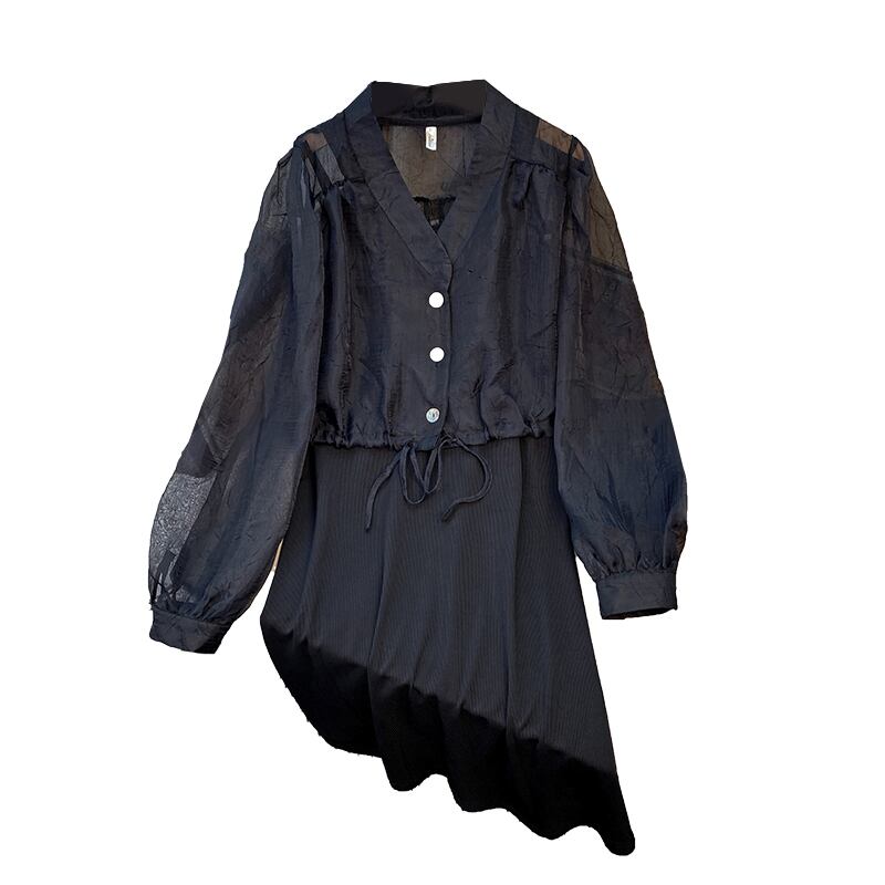 プラスサイズの婦人服 2023 脂肪姉妹春の新ファッションスリム気質サスペンダースカート日焼け止めシャツツーピーススーツ 大きめサイズ スプリング 春物 8884187056667340