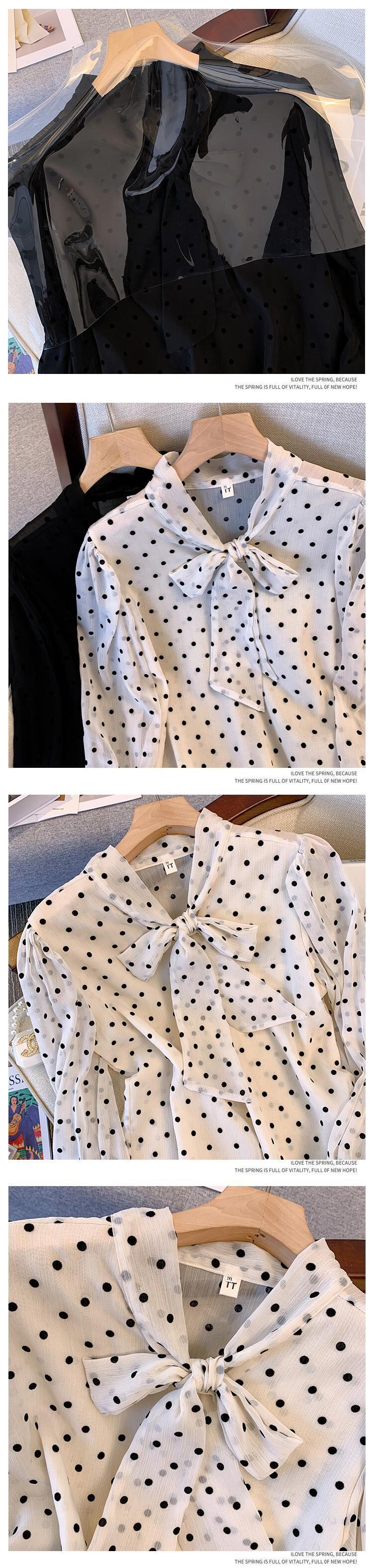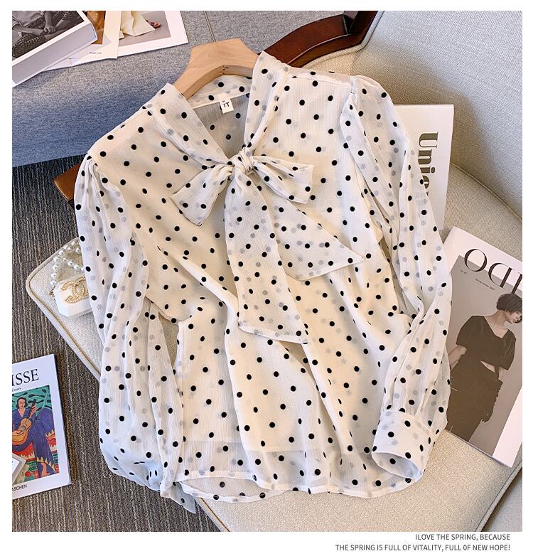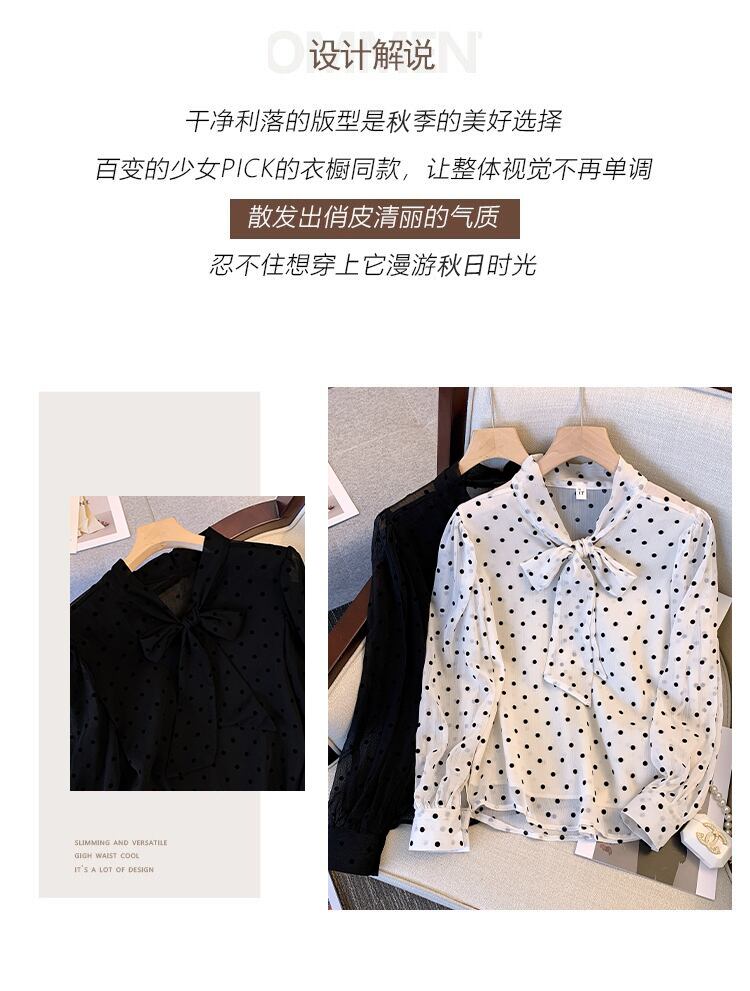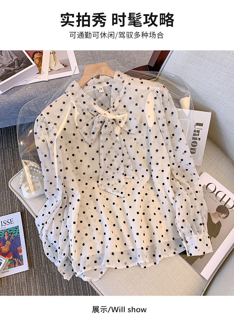 プラスサイズの婦人服 2023 トレンディな女性の春の新しいファットシスター穏やかな風蝶ネクタイパフスリーブ気質シャツ女性 リボン 大きめサイズ スプリング 春物 8884172349671437
