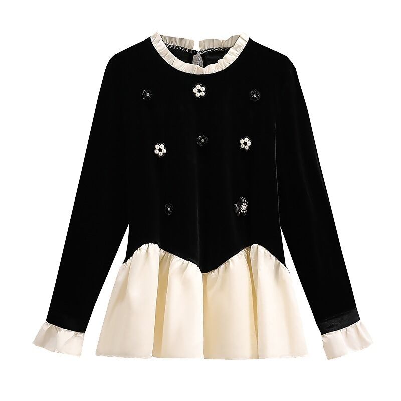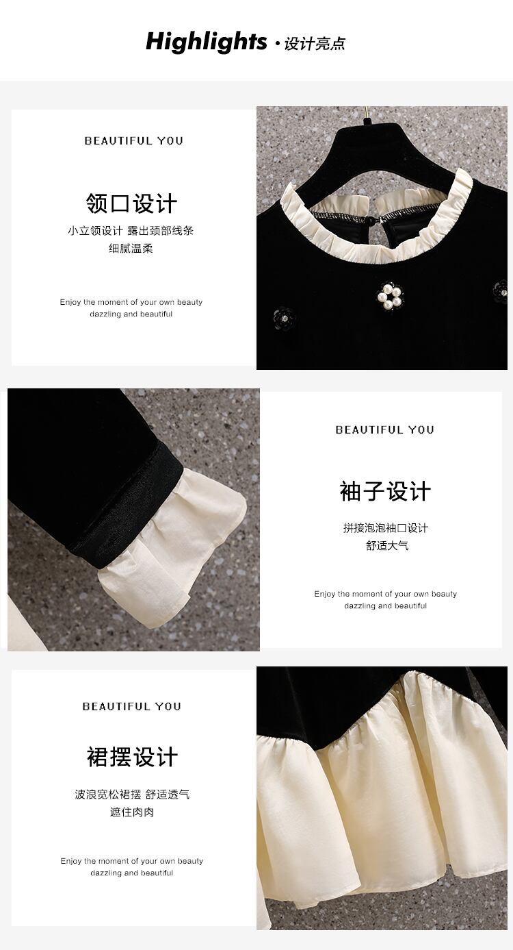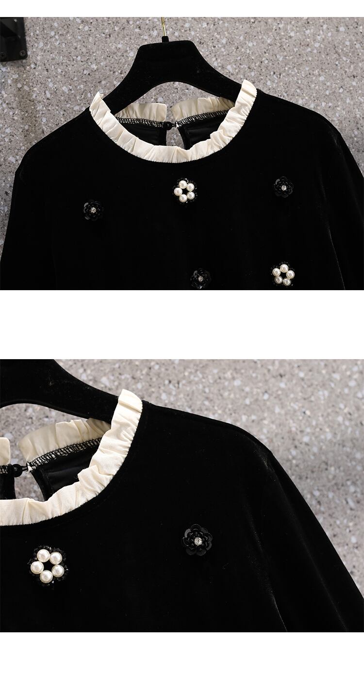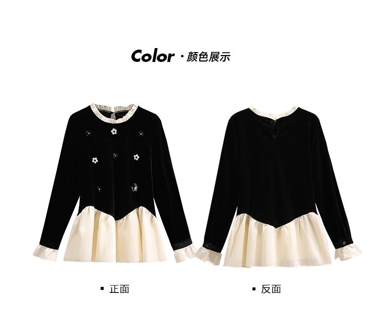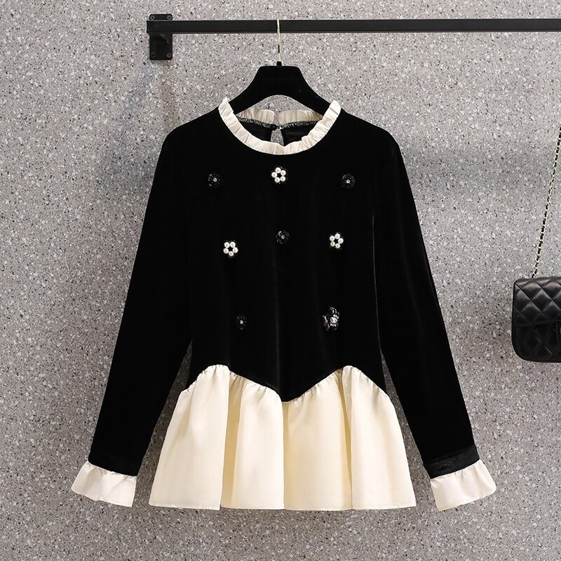 プラスサイズの女性の春服ファットシスターフレンチシンベルベットトップボトムシャツレディースファットmmフェイクツーTシャツ 大きめサイズ スプリング 春物 8884174025005563