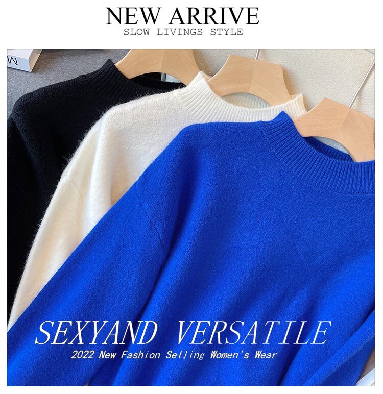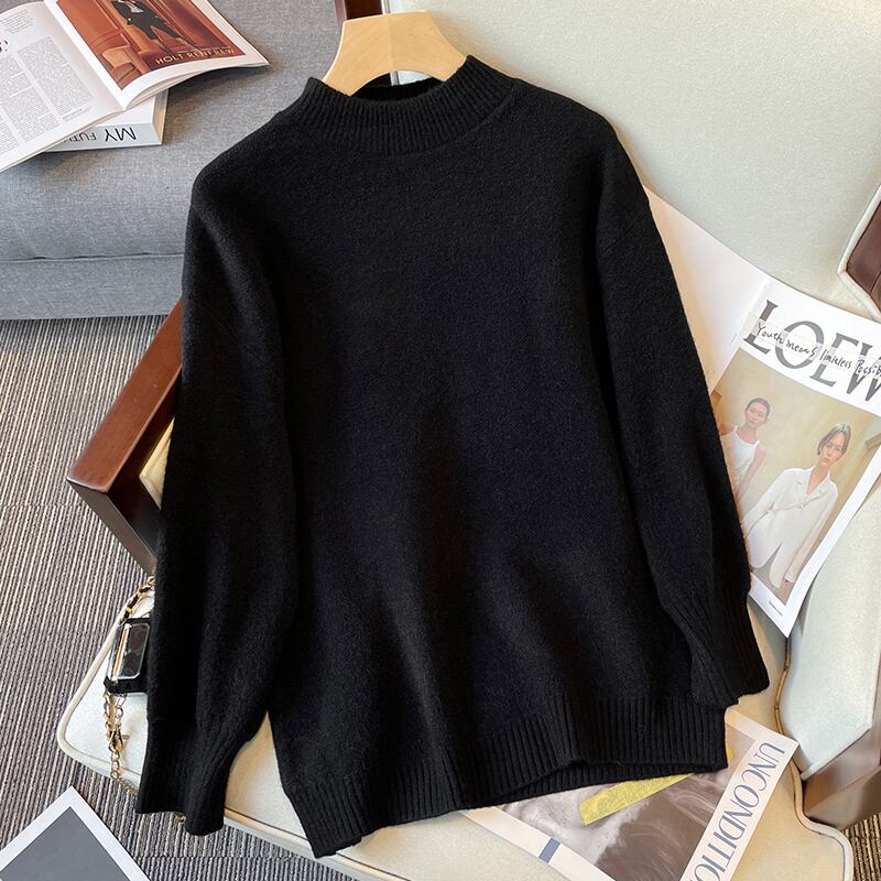 大きいサイズの婦人服 2023 春の新しいファット シスター無地デザイン ハーフ ハイ カラー カジュアル シックな肉を覆うセーター 大きめサイズ スプリング 春物 ソリッドカラー 8884189417609175