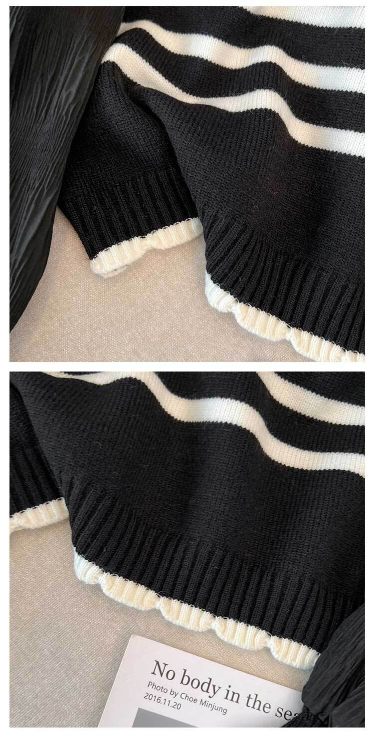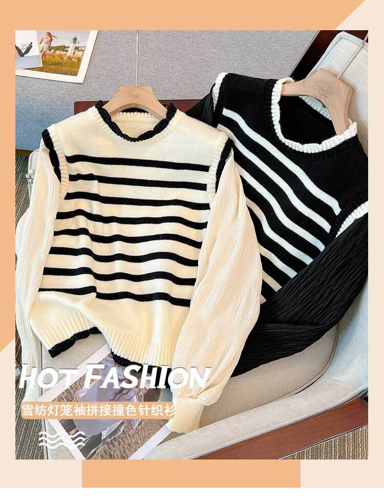 大きいサイズの婦人服 2023 春の新しいファット シスター デザイン センス スプライシング ストライプ シックなフェイク ツーピース ニット トップ 大きめサイズ スプリング 春物 8884120334301358