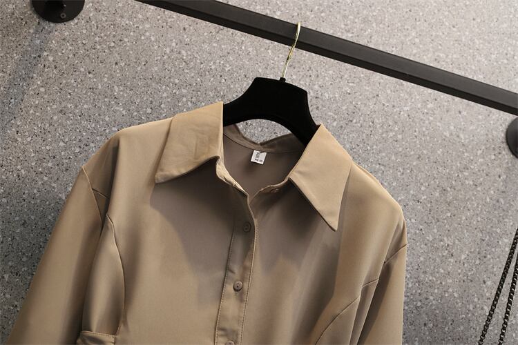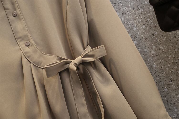 大きいサイズの婦人服 2023 トレンディな女性の春の新しいスタイルの太った姉妹のファッション痩身 eign スタイルの年齢を減らすすべての試合のネクタイ ウエスト ウエスト シャツ 大きめサイズ スプリング 春物 8884150078688459