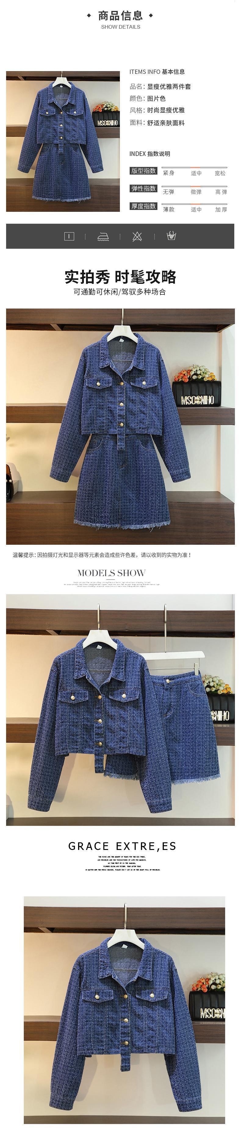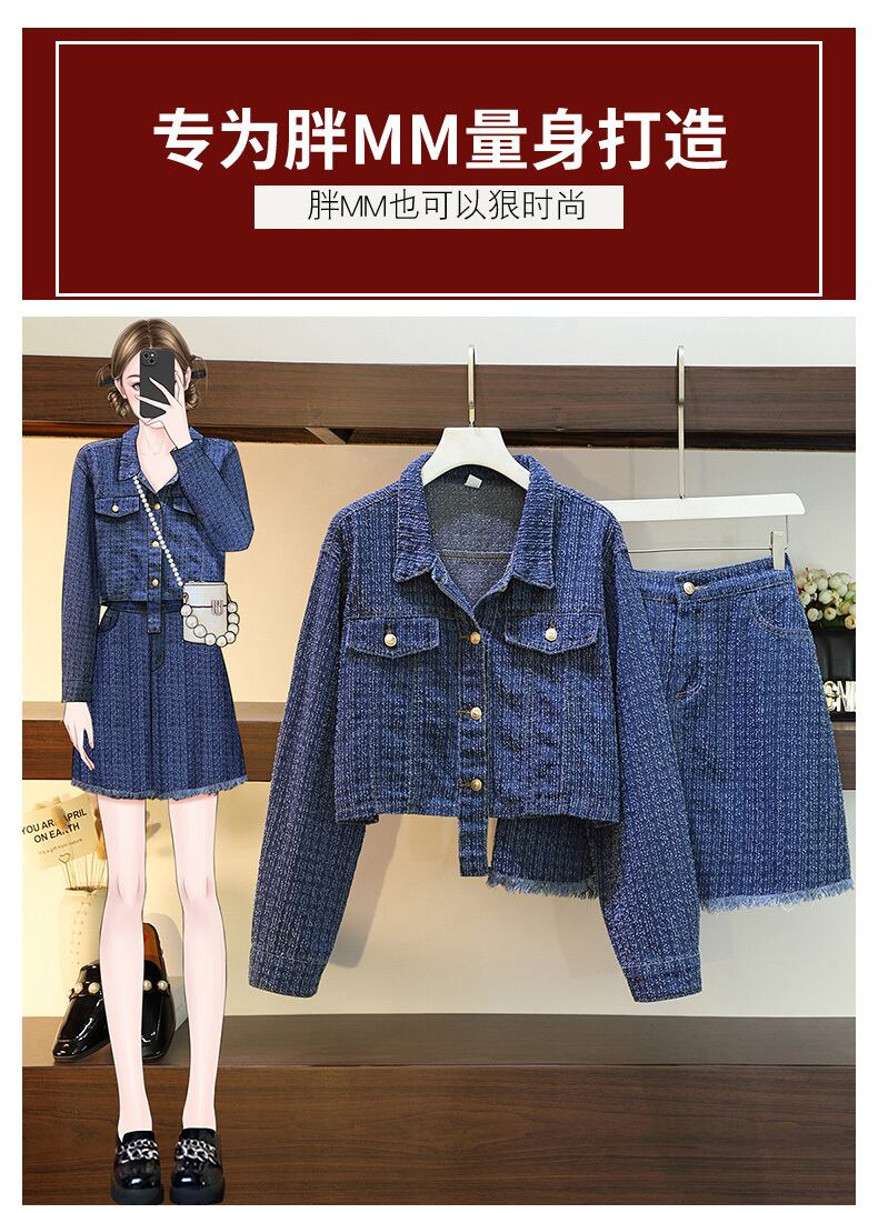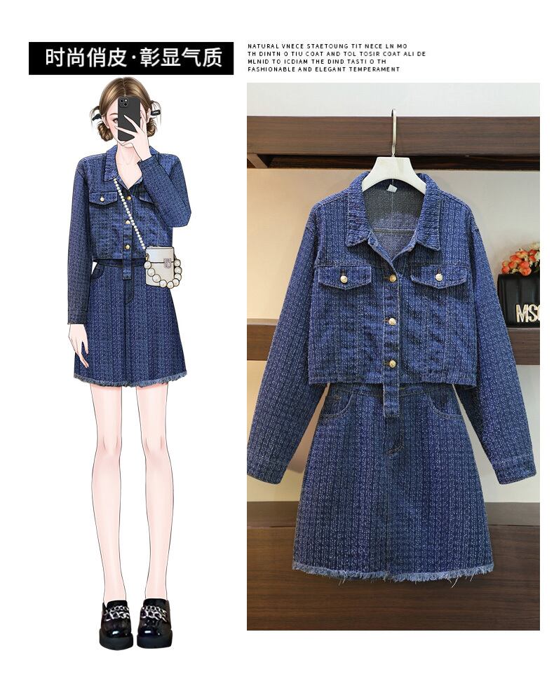 プラスサイズの婦人服 2023 ファットシスター春の新ファッションスリムデニムジャケットハイウエストスカート 2 点セット ハイウェスト 大きめサイズ スプリング 春物 8884143895350327