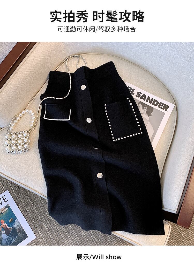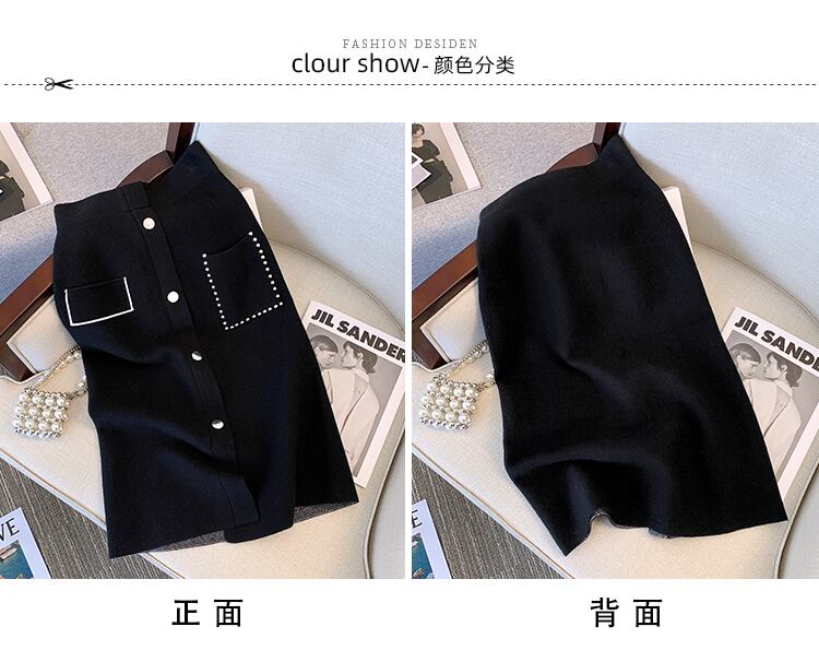 プラスサイズの婦人服 2023 脂肪姉妹春の新カジュアルオールマッチシングルブレストハイウエストスリムニットスカートの女性 ハイウェスト 大きめサイズ スプリング 春物 888419786850100
