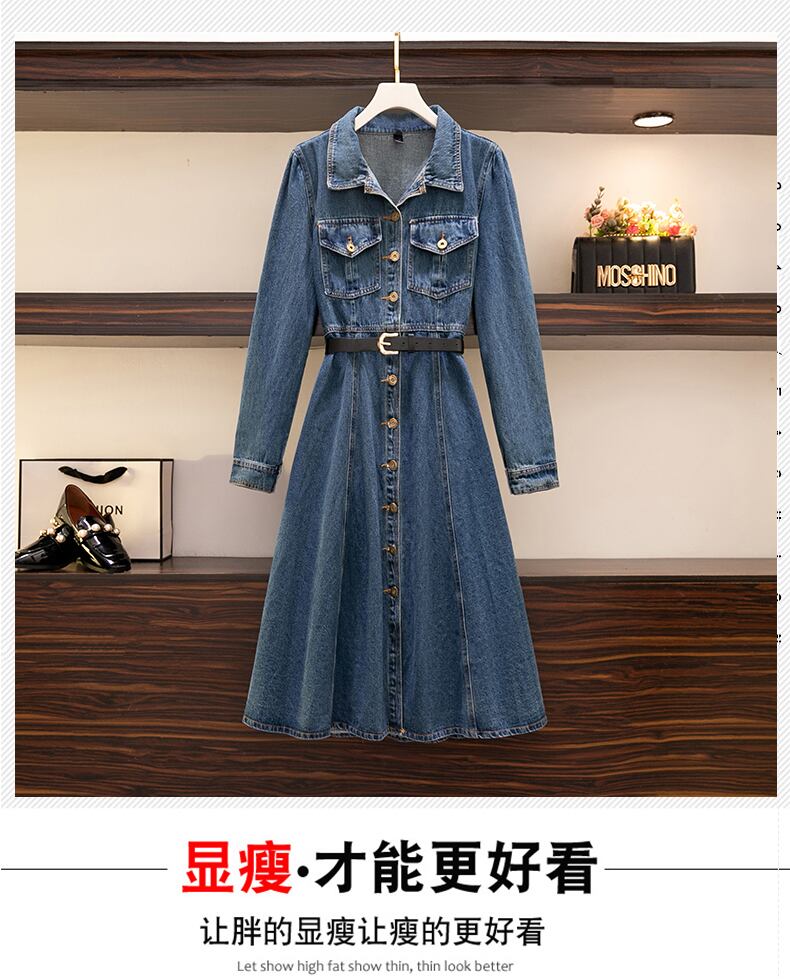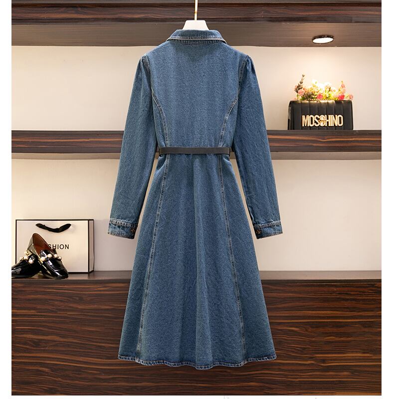 プラスのサイズの婦人服 2023 春の新しいファット シスター フレンチ オールマッチ気質デザイン センス ウエスト デニム ドレス 大きめサイズ スプリング 春物 8884134240264268