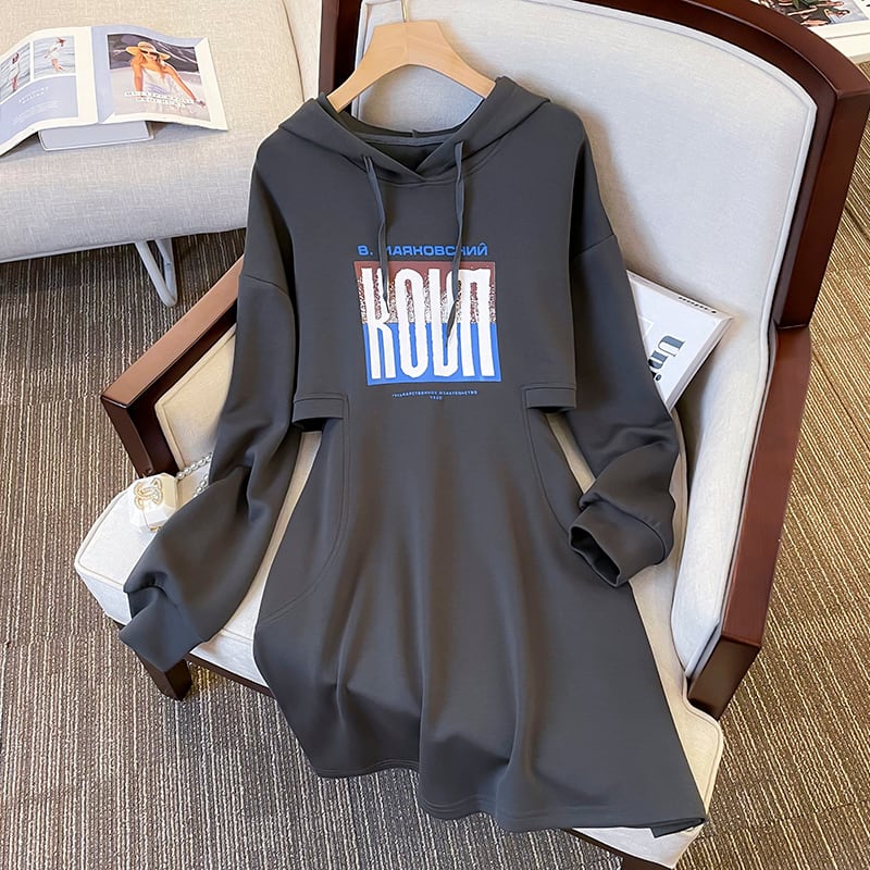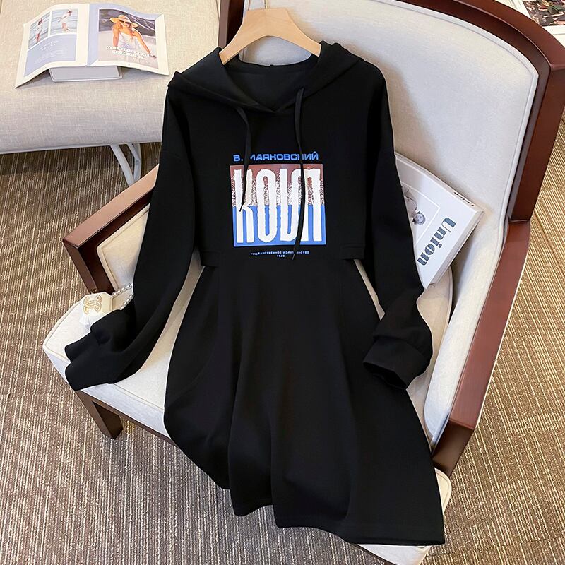 プラスサイズの婦人服 2023 春服脂肪姉妹新しいプリントセータースカートデザインの薄いウエストレスドレス女性 大きめサイズ スプリング 春物 8884187106512649