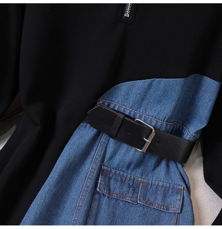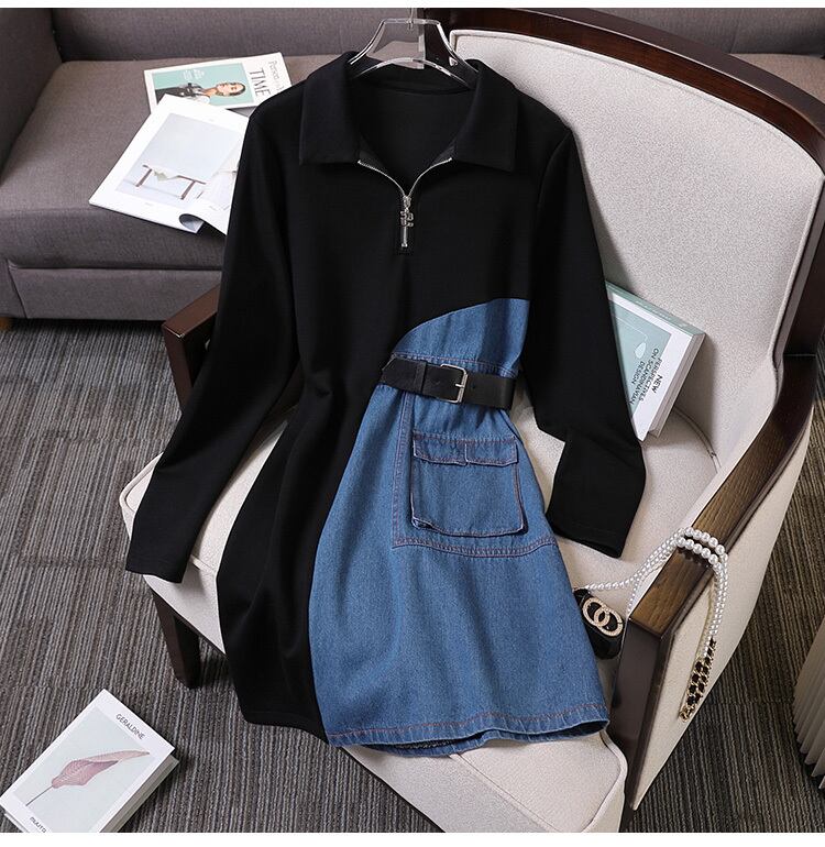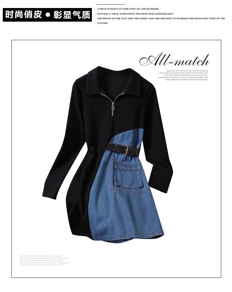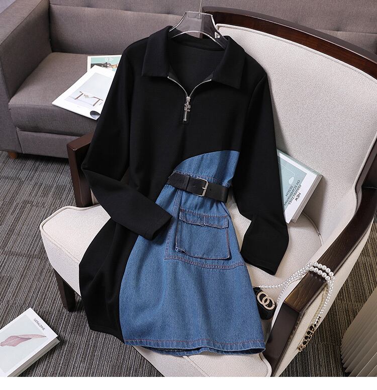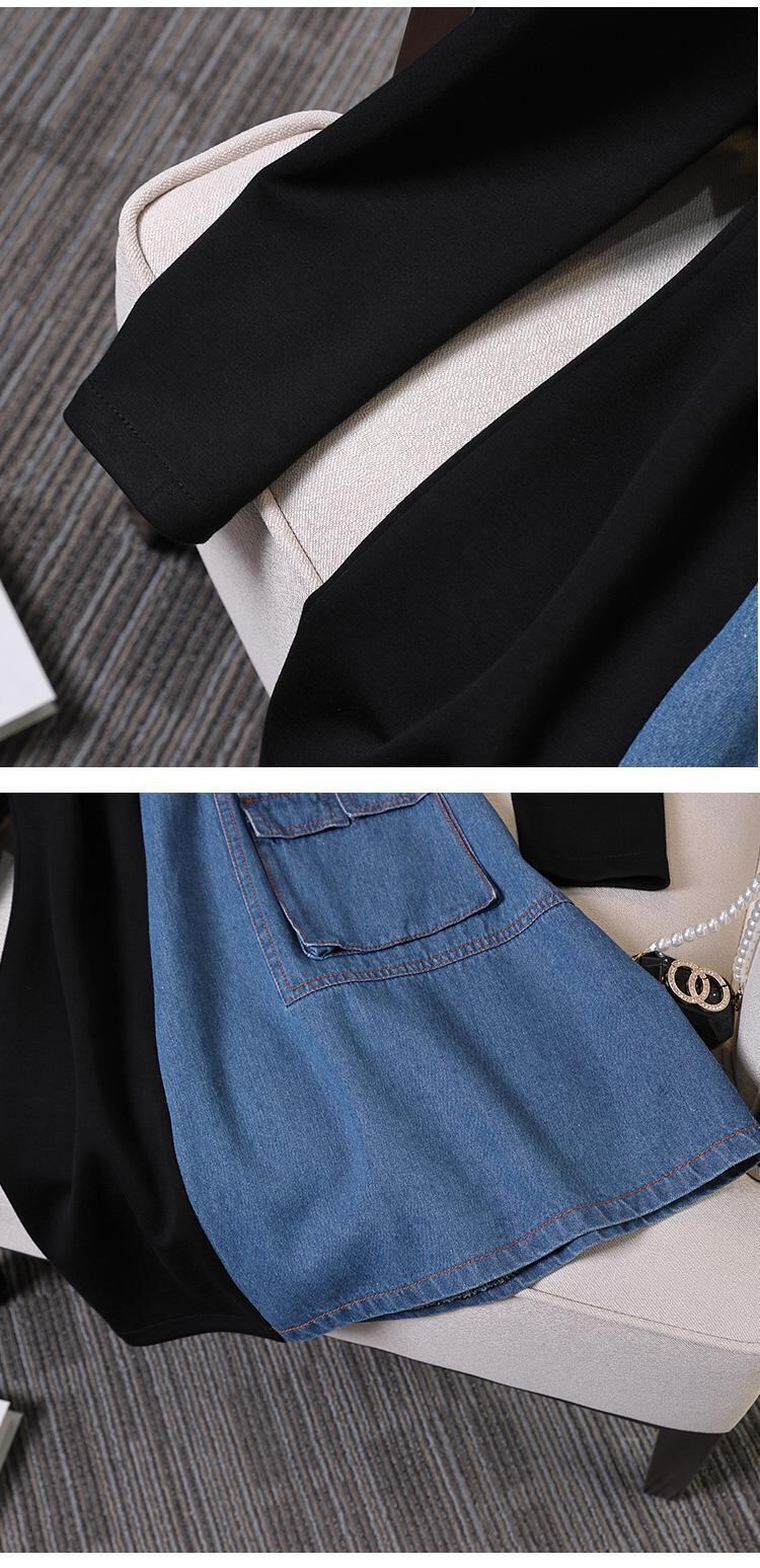 プラスサイズの婦人服 2023 脂肪姉妹春の新ファッションデニムスプライシング不規則な薄いボディカバードレス女性 大きめサイズ スプリング 春物 8884146983883013