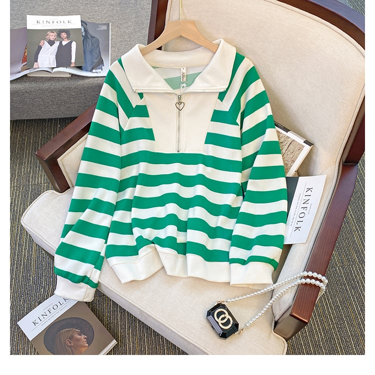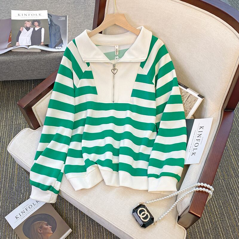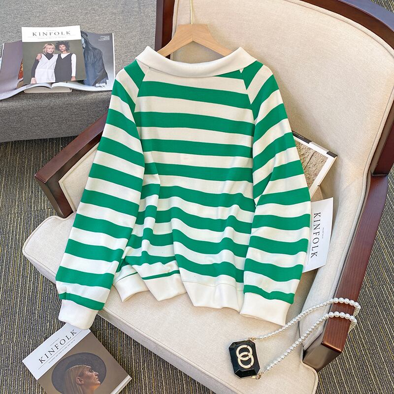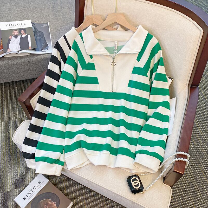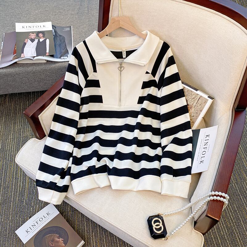 大きいサイズの婦人服 2023 ファット シスター 春の新しいデザイン センス ルーズ ニッチ ストライプ セーター エイン スタイル 年齢を減らすトップ 大きめサイズ スプリング 春物 8884172045717093