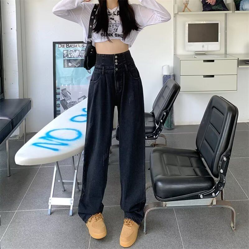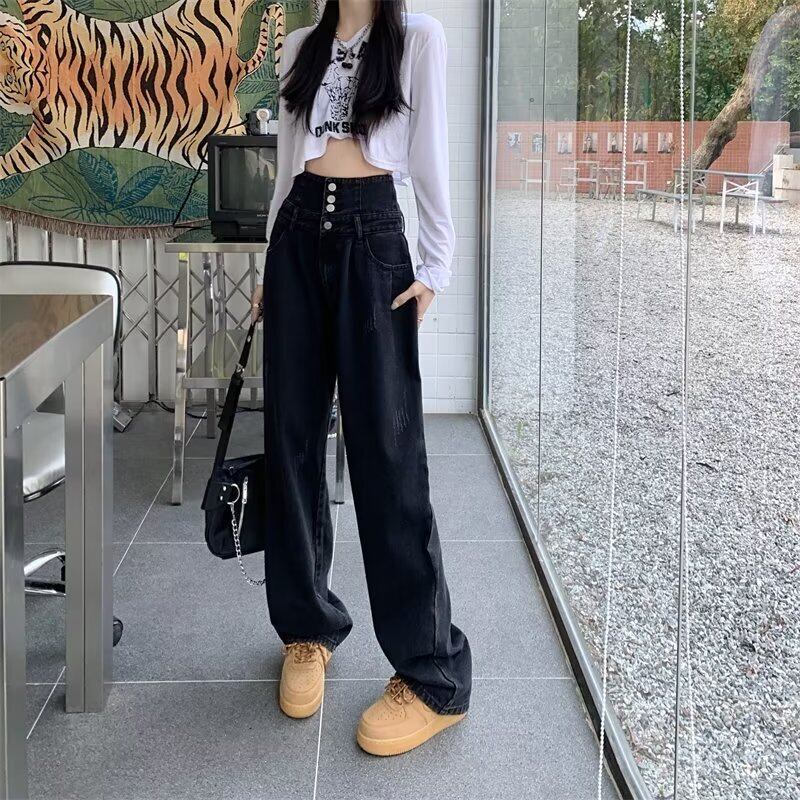 大きいサイズの婦人服 2023 トレンディな女性の春の新しいファット シスター レトロなデザイン センス ルーズで薄いストレート ワイドレッグ ジーンズ 大きめサイズ スプリング 春物 8884111330635584