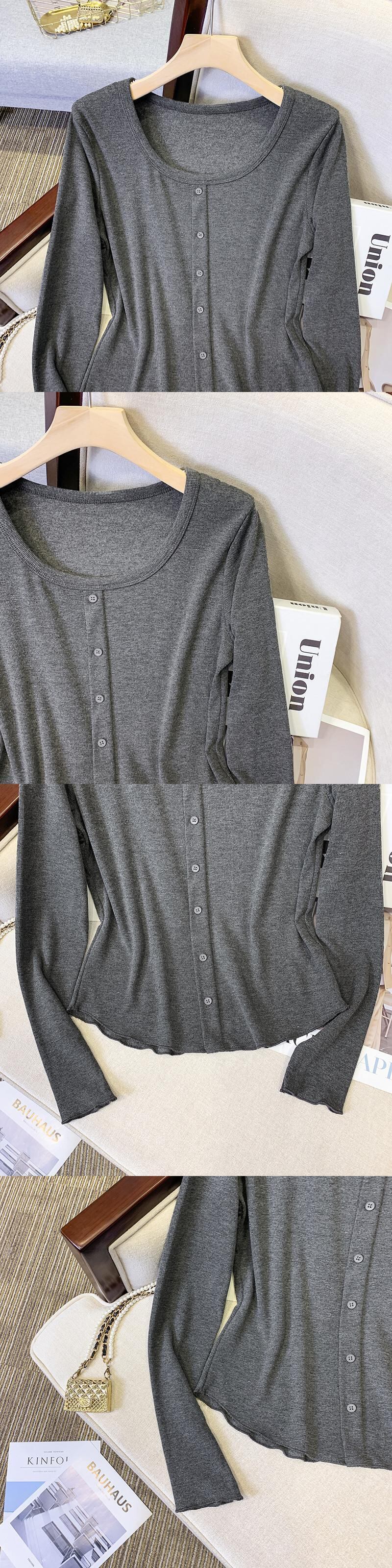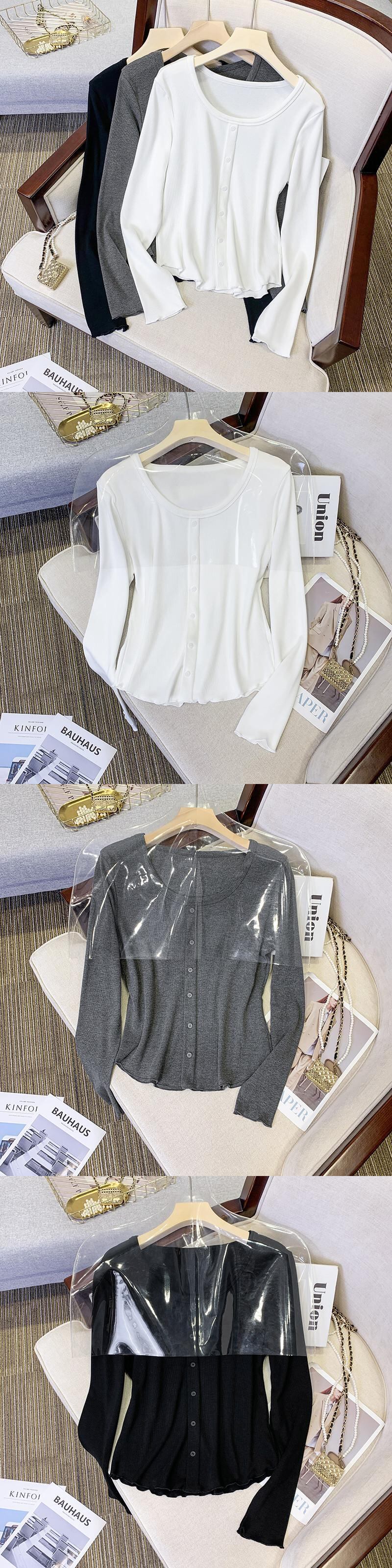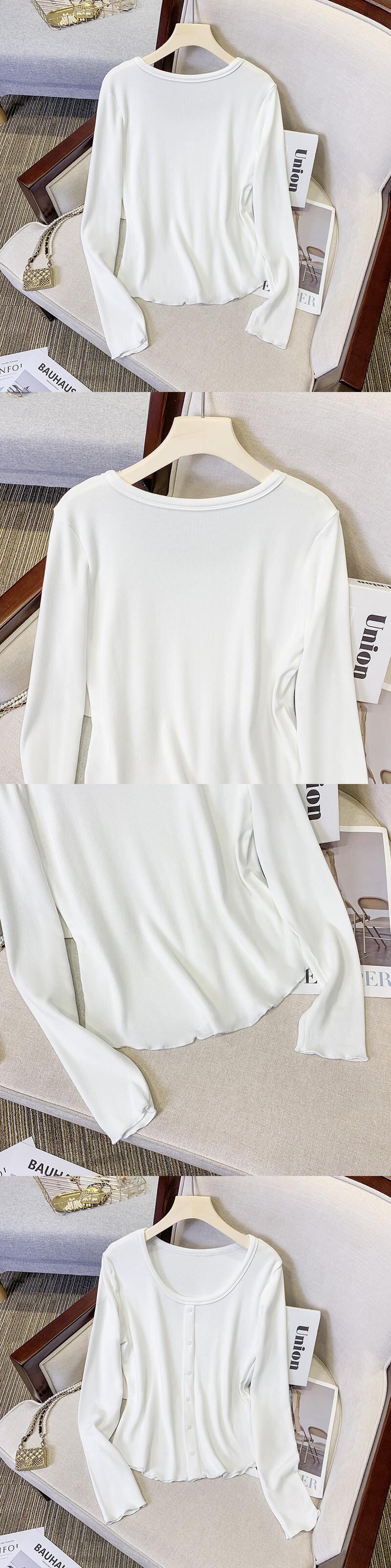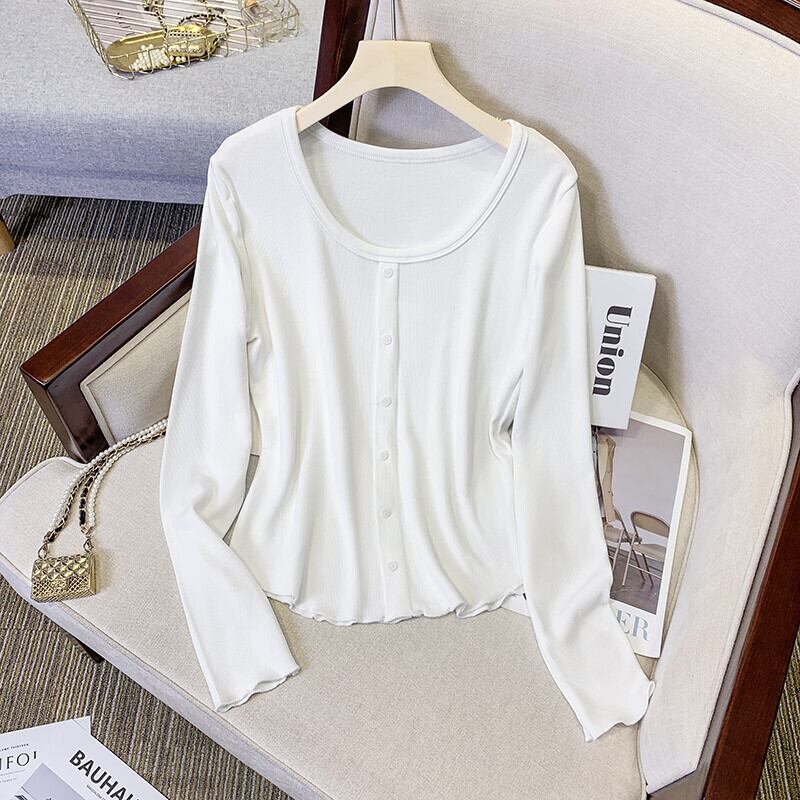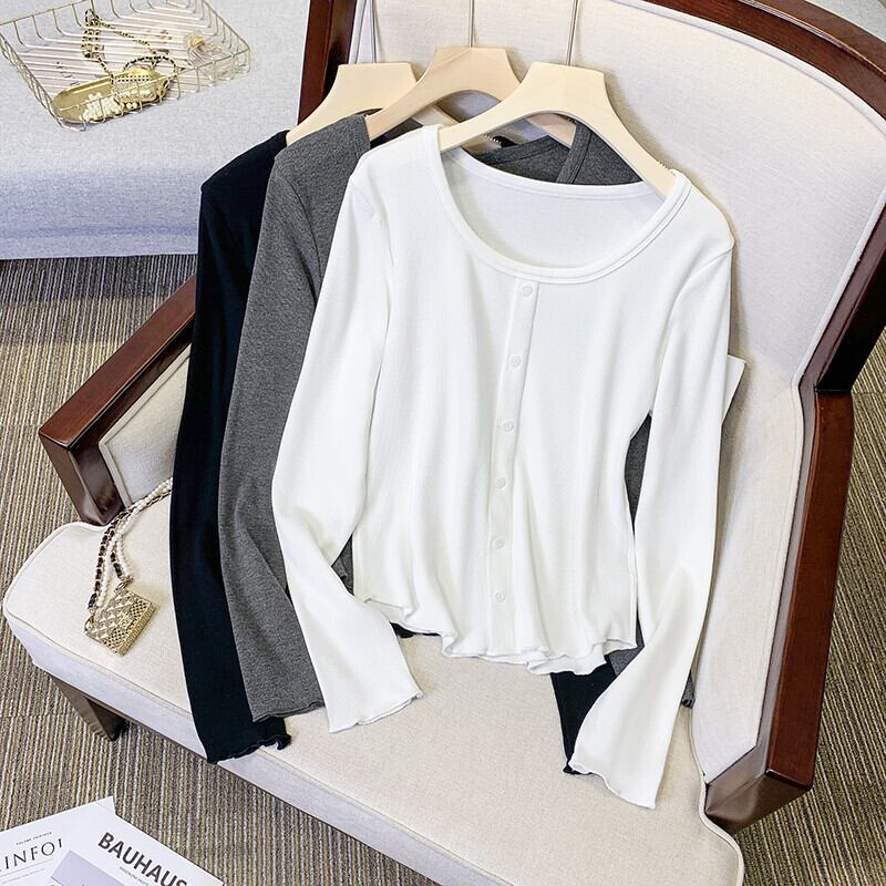 プラスサイズの婦人服 2023 ファットシスター春の新しい eign スタイルの自己修養木製耳付き長袖ボトムシャツトップ女性 ロング 大きめサイズ スプリング 春物 8884175731696202