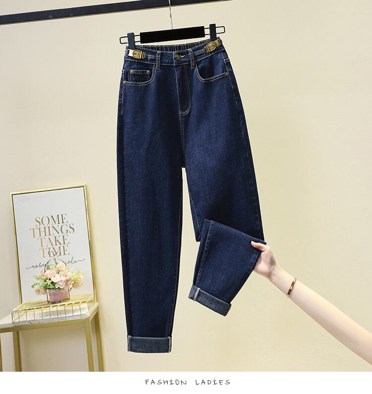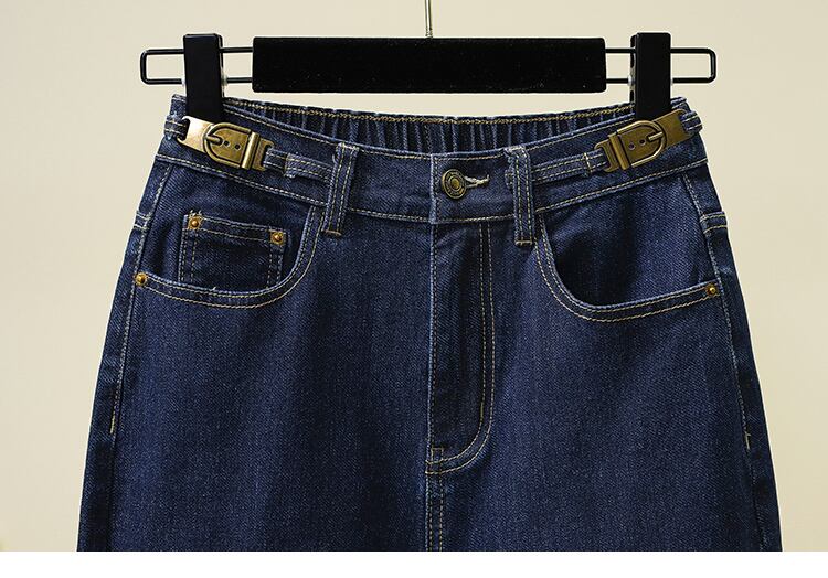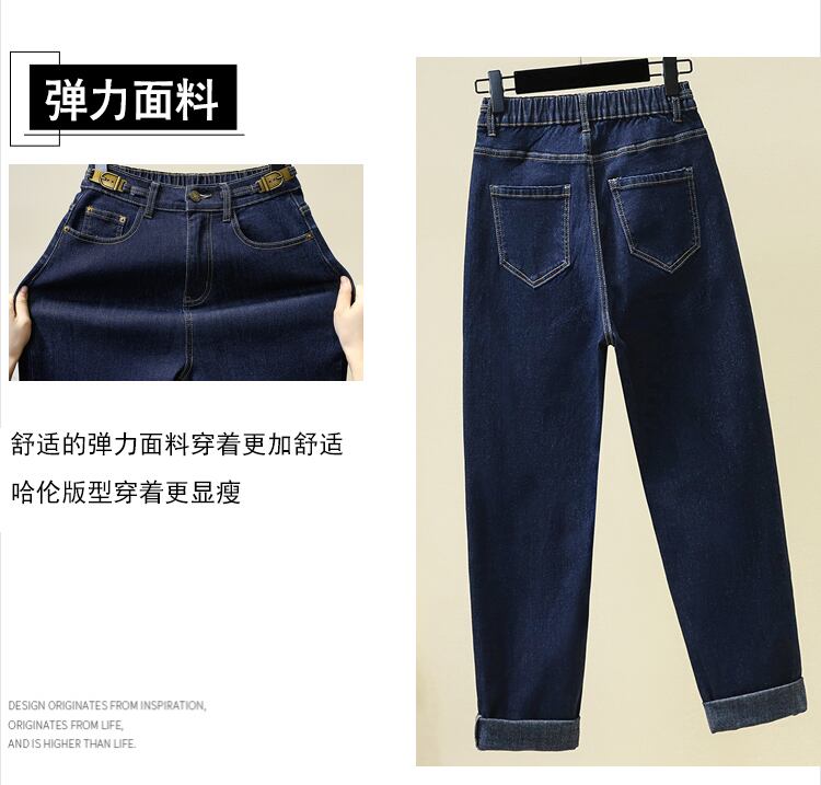 プラスサイズの婦人服 2023 春の新しいスタイルのファットシスターカジュアルシックな緩い弾性ハイウエストファッション老化ジーンズ ハイウェスト エラスティック 伸縮 大きめサイズ スプリング 春物 8884145530327442