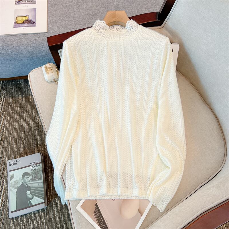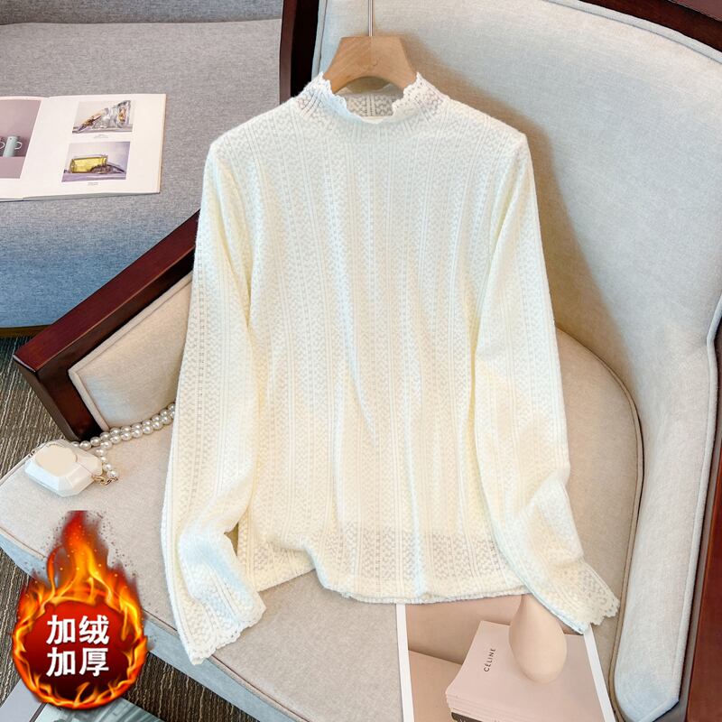 プラスサイズの婦人服 2023 春の新しいファットシスターフレンチスタイルスリムハーフハイカラーレースプラスベルベット肥厚底入れシャツ女性 大きめサイズ スプリング 春物 8884116984007158