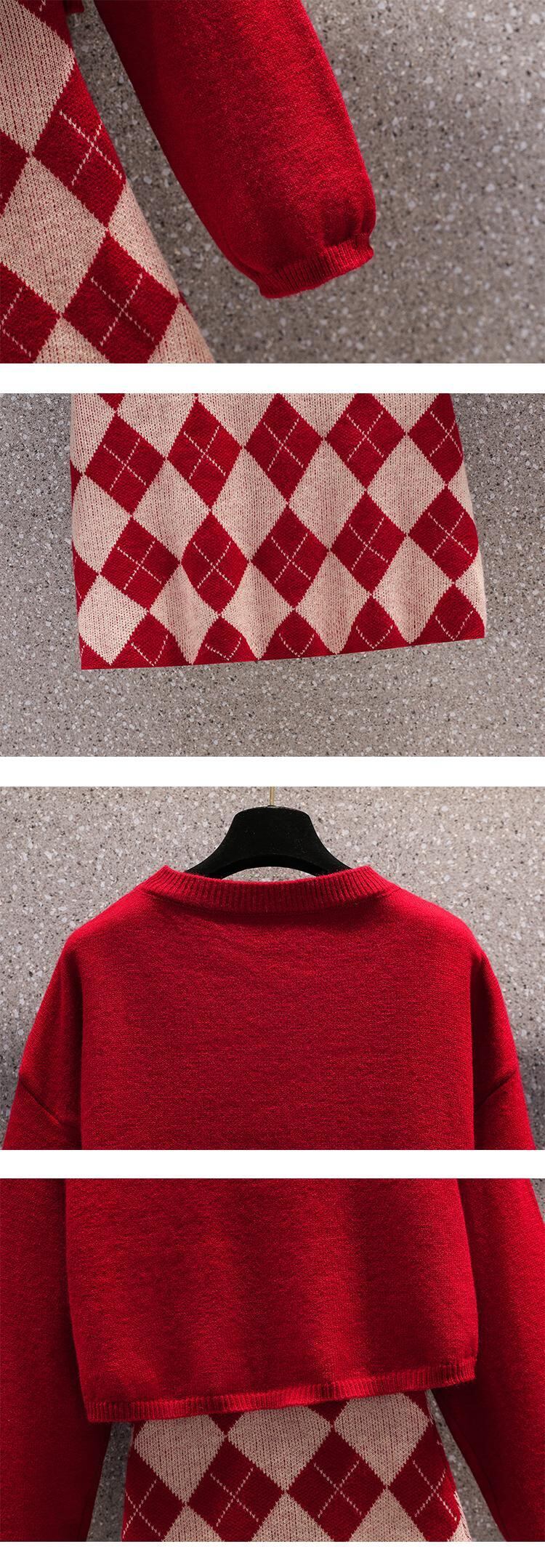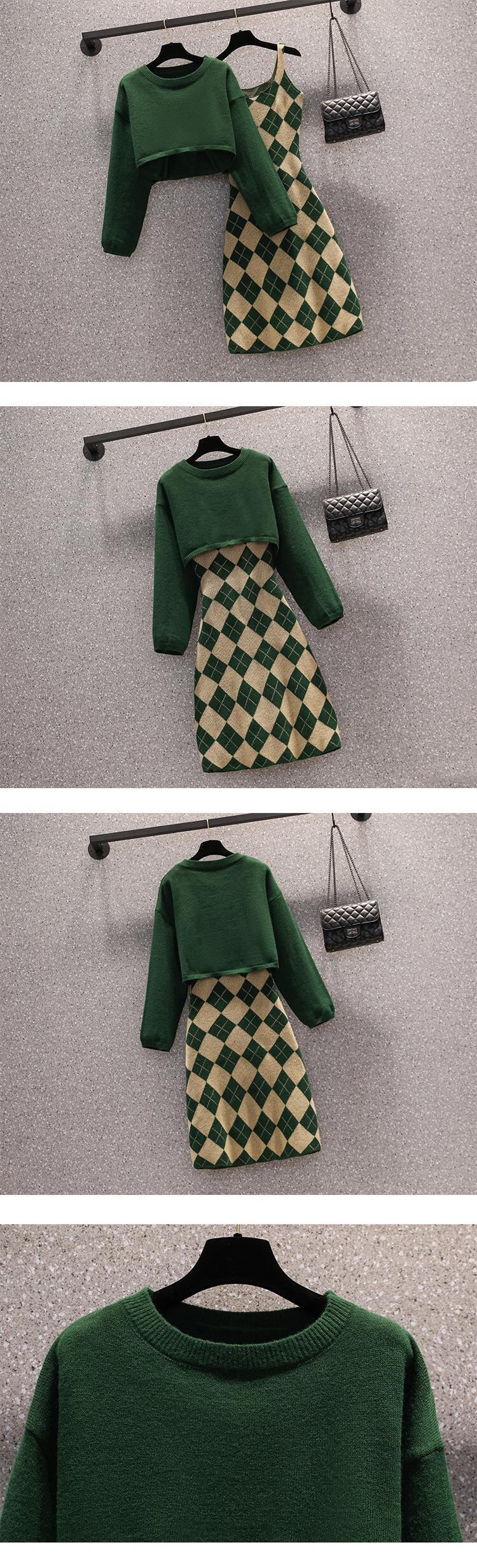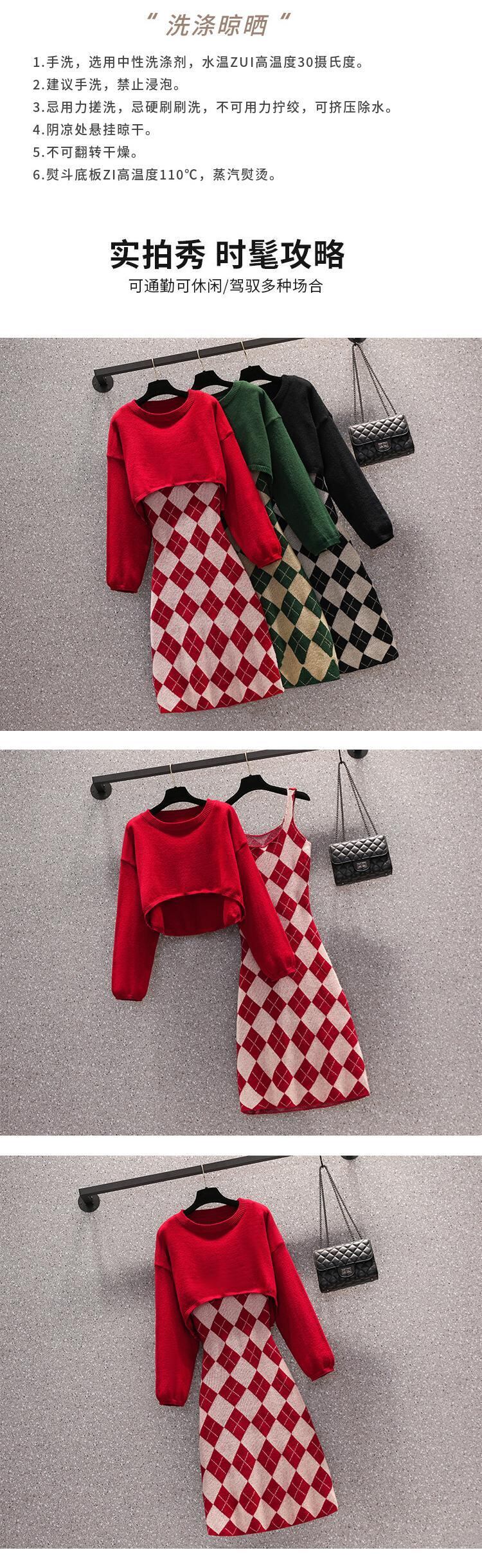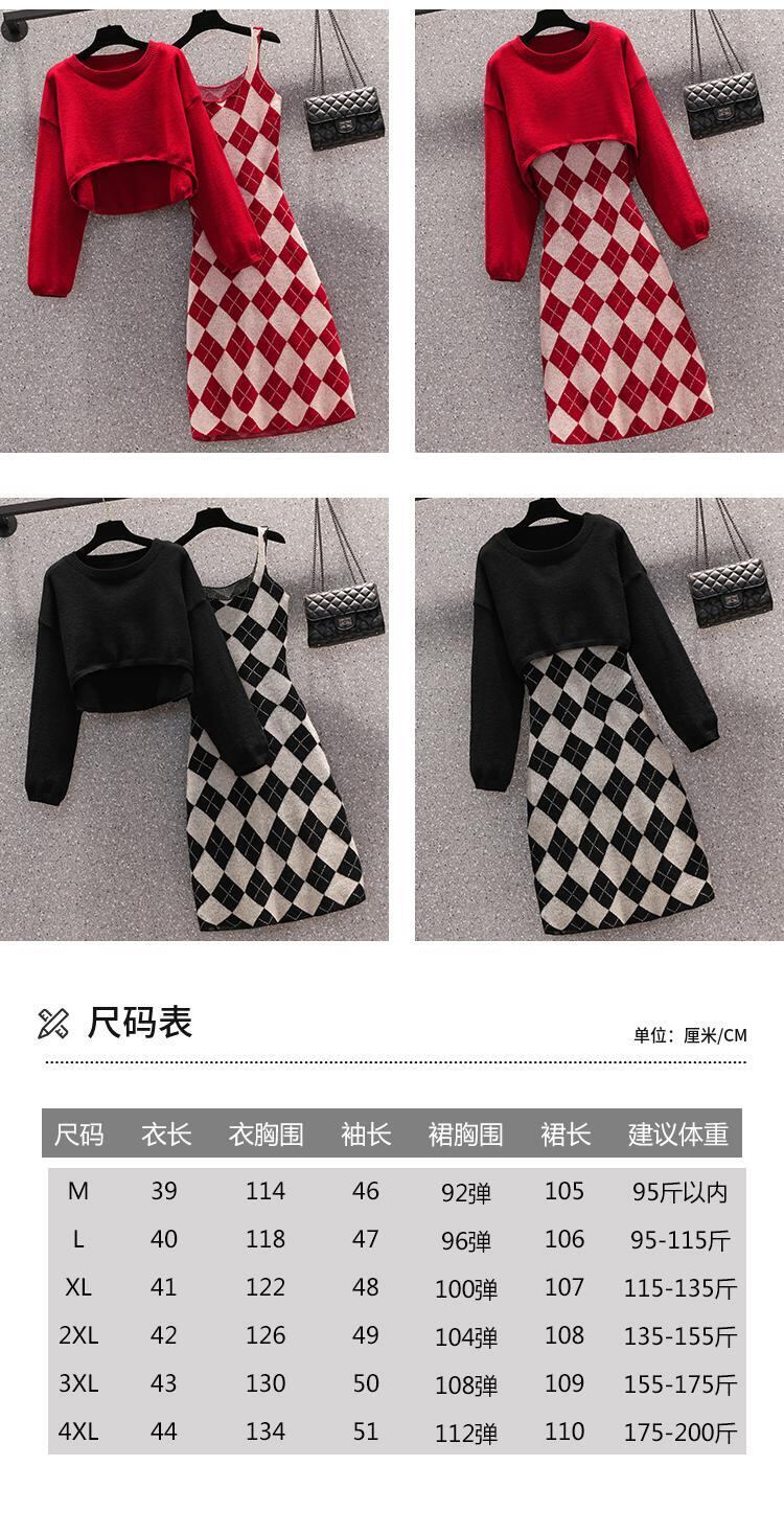 プラスサイズの婦人服 2023 ファットシスター春の新ヘップバーンスタイルニットサスペンダースカートショートセーターツーピーススーツ 大きめサイズ スプリング 春物 8884129152540727