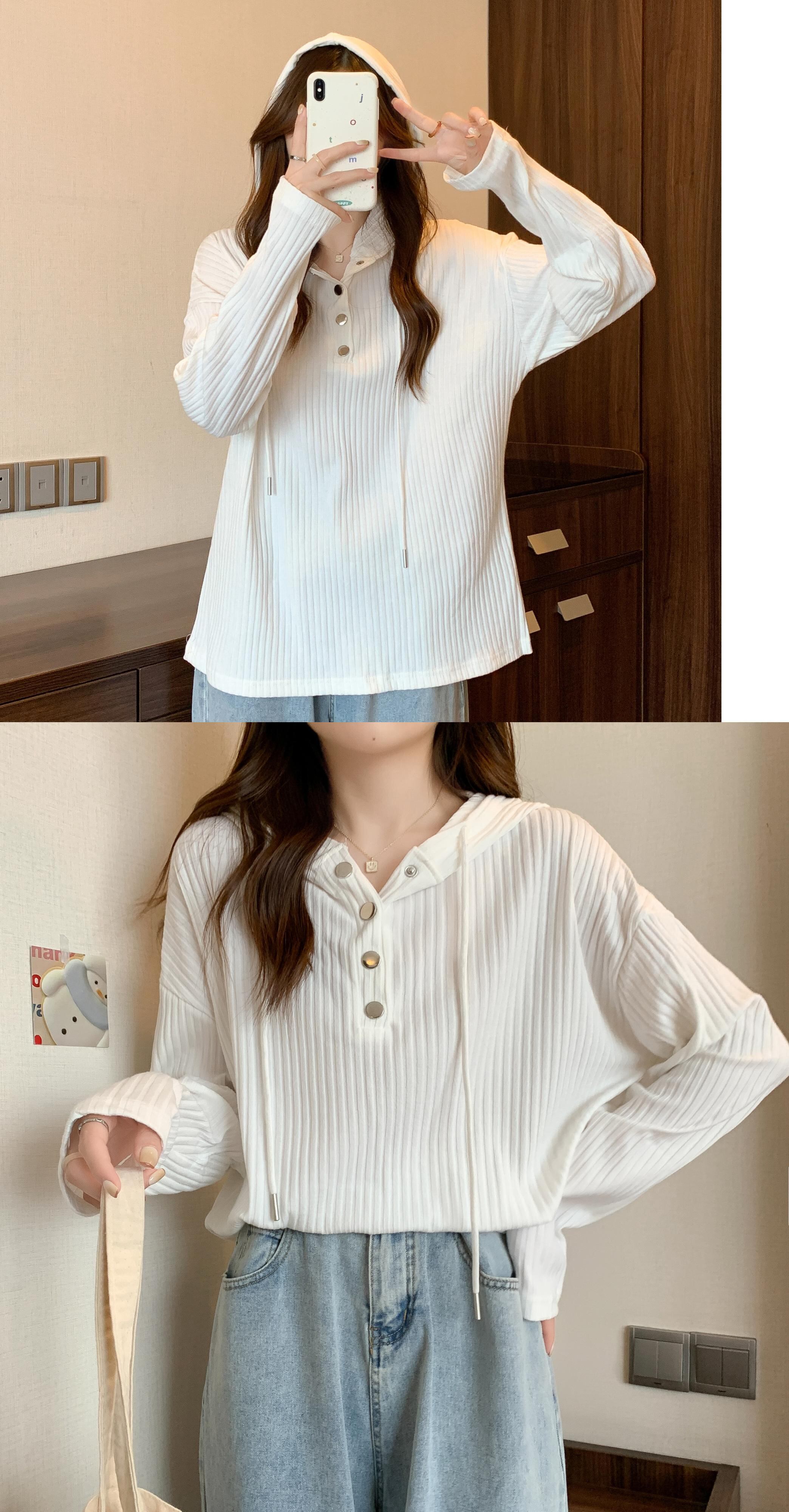 大きいサイズの婦人服2023年春服ファットシスターズの新しいフード付きTシャツルーズで薄いオールマッチニットトップス 大きめサイズ スプリング 春物 8884172386569928