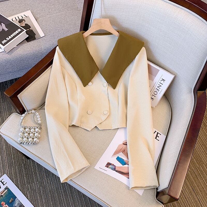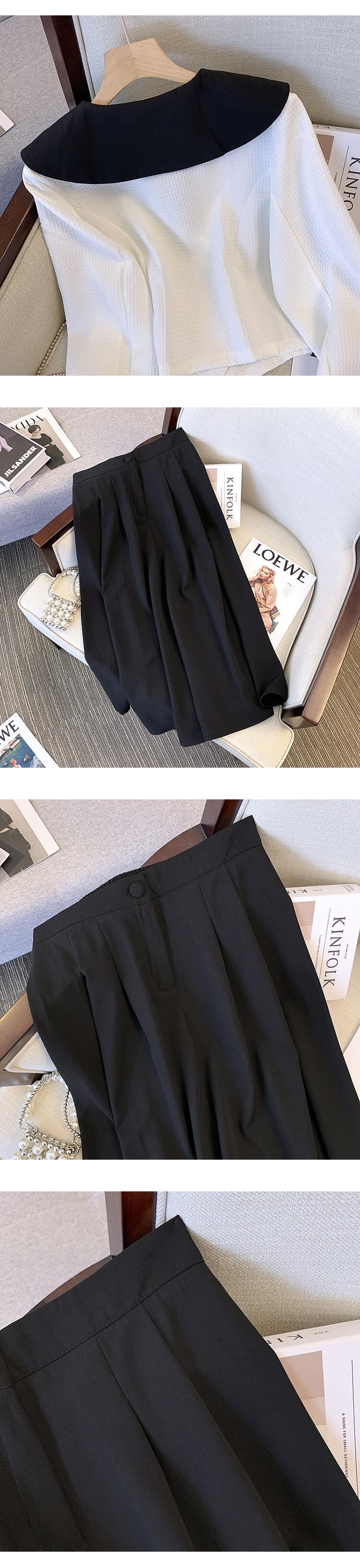 プラスサイズの婦人服 2023 春服脂肪姉妹新しいフレンチ スタイル レトロ コントラスト カラー ラペル トップとスカート 2 点セット 大きめサイズ スプリング 春物 888413146769162