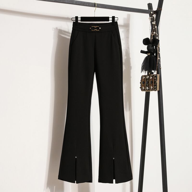 プラスサイズの婦人服 2023 ファットシスター春の新バージョンスリム OL スリット高弾性スーツパンツフレアパンツズボン レッド エラスティック 伸縮 大きめサイズ スプリング 春物 8884149085950353