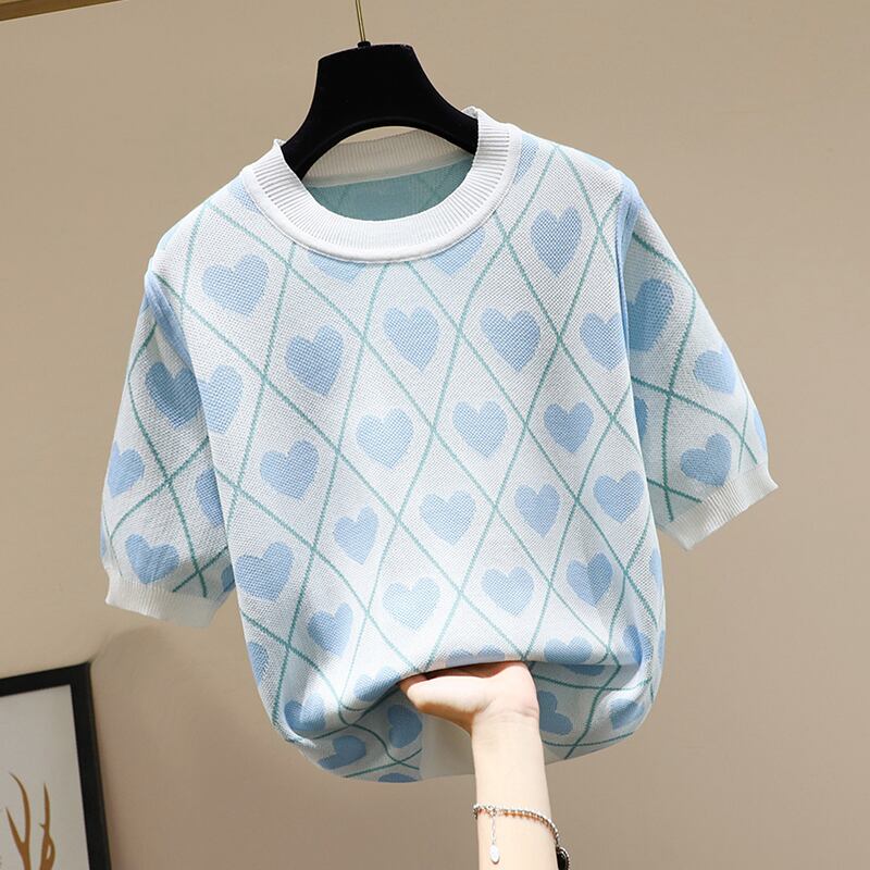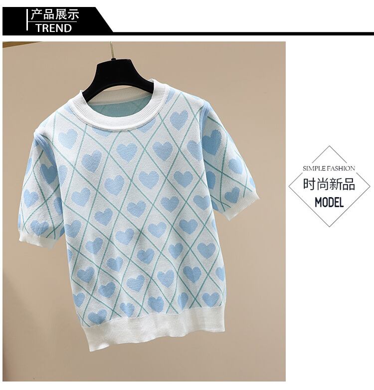 大きいサイズの婦人服 2023 ファット シスター夏の新しい痩身と年齢を減らすラウンド ネック半袖 eign スタイル ラブ Tシャツ トップ 大きめサイズ サマー 夏物 Oネック 8884144794361631