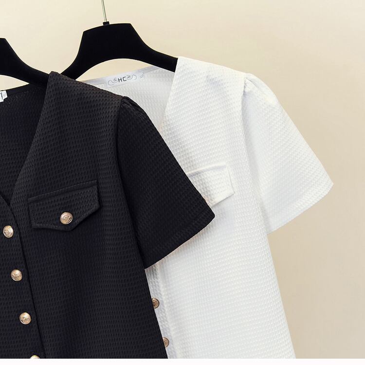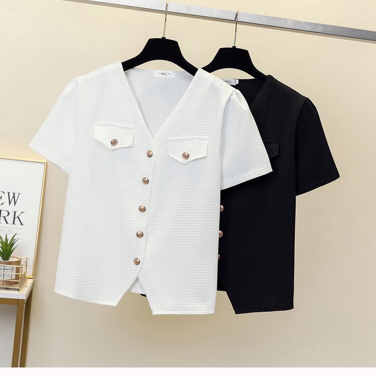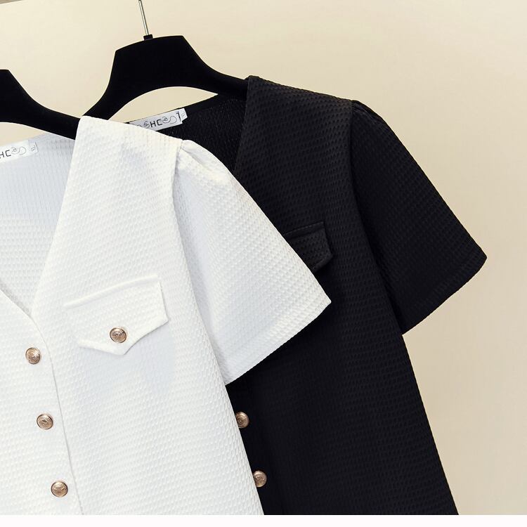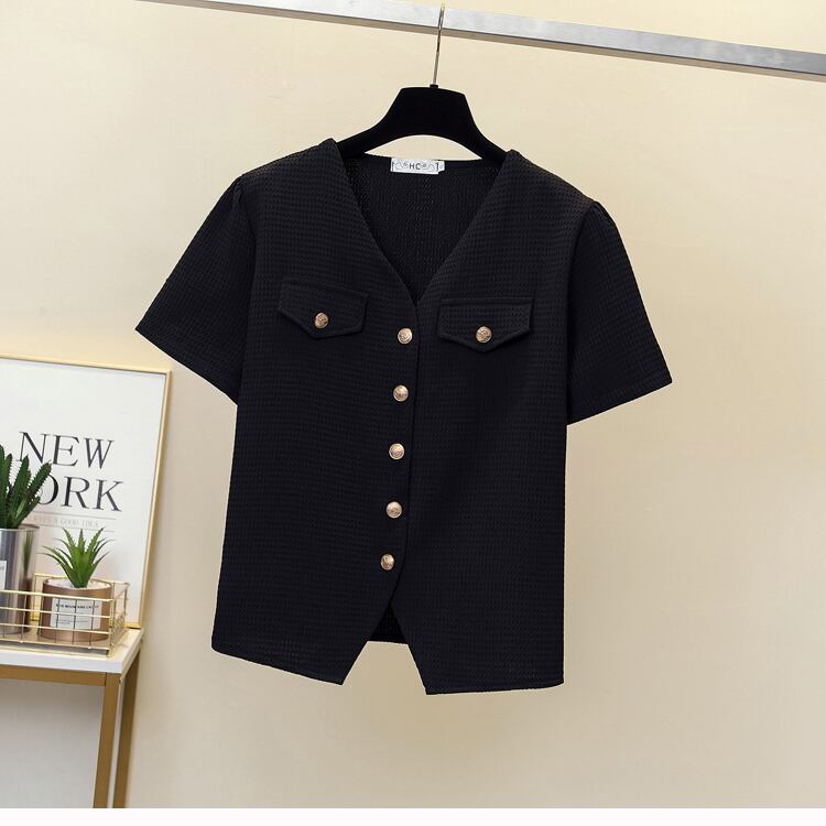 大きいサイズの婦人服 2023 夏の新しいファットシスターファッションオールマッチ小さなカーディガン半袖トップ Tシャツの女性 大きめサイズ サマー 夏物 8884113551006572
