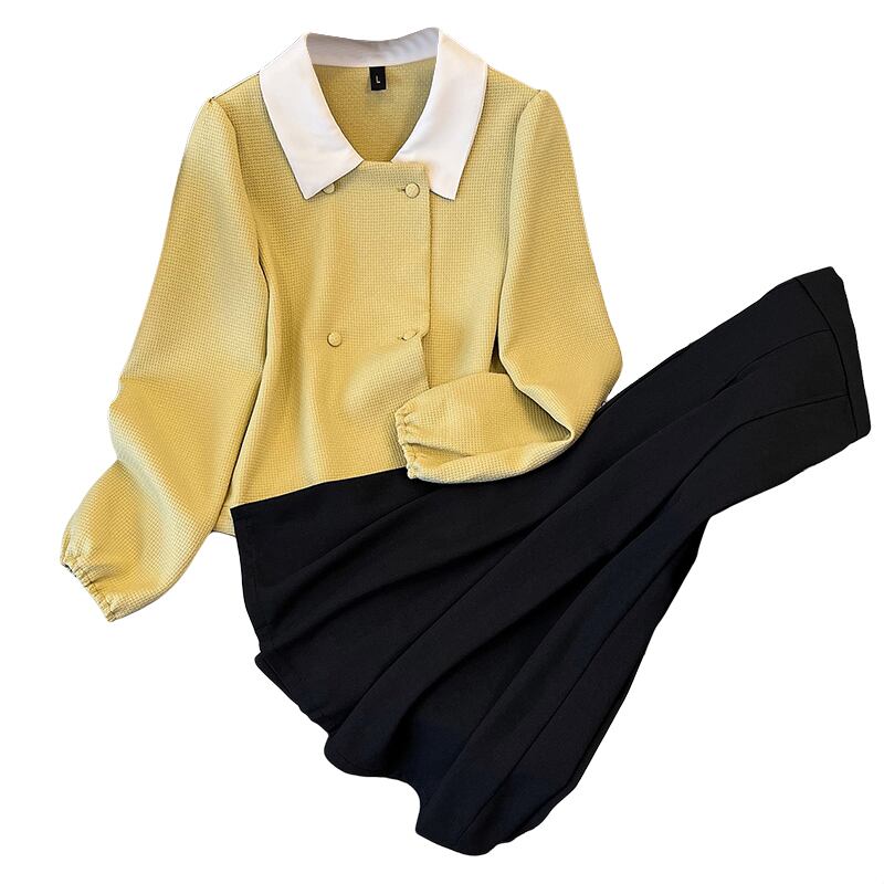 プラスサイズの婦人服 2023 春服脂肪姉妹新バージョンスリム人形の襟シャツスカートツーピーススーツ 大きめサイズ スプリング 春物 8884190442058236