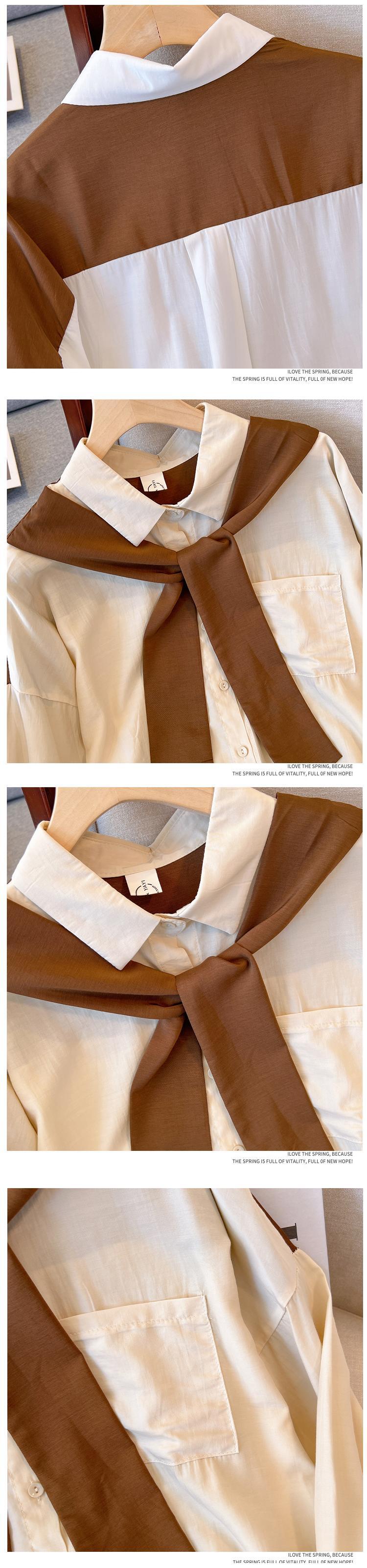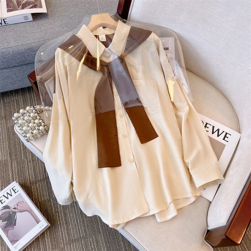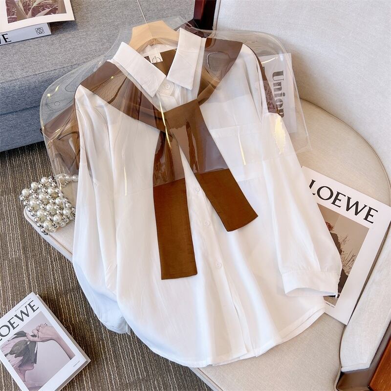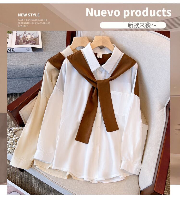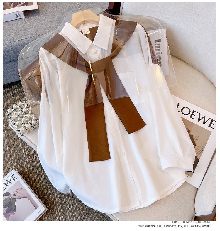 プラスサイズの婦人服 2023 春の新しいスタイルの太った姉妹緩いカバー腹薄いポロ襟ショール偽ツーピースシャツ女性 大きめサイズ スプリング 春物 8884163733741275