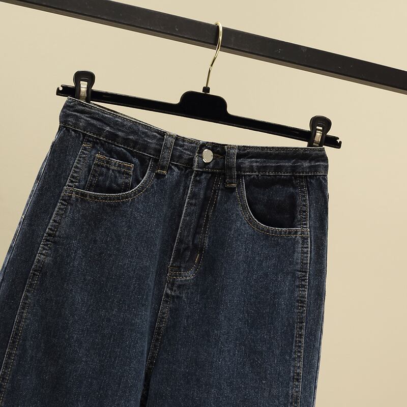 プラスサイズの婦人服 2023 春の新しいファットシスターの気質年齢を減らすハイウエストのシックなデニムストレートレッグパンツの女性 大きめサイズ スプリング 春物 8884167971351733