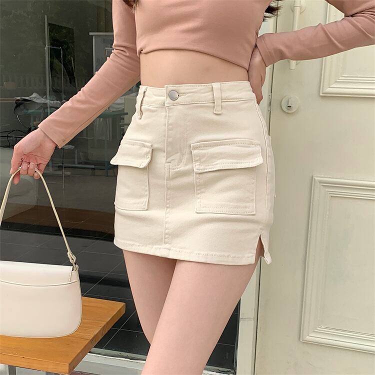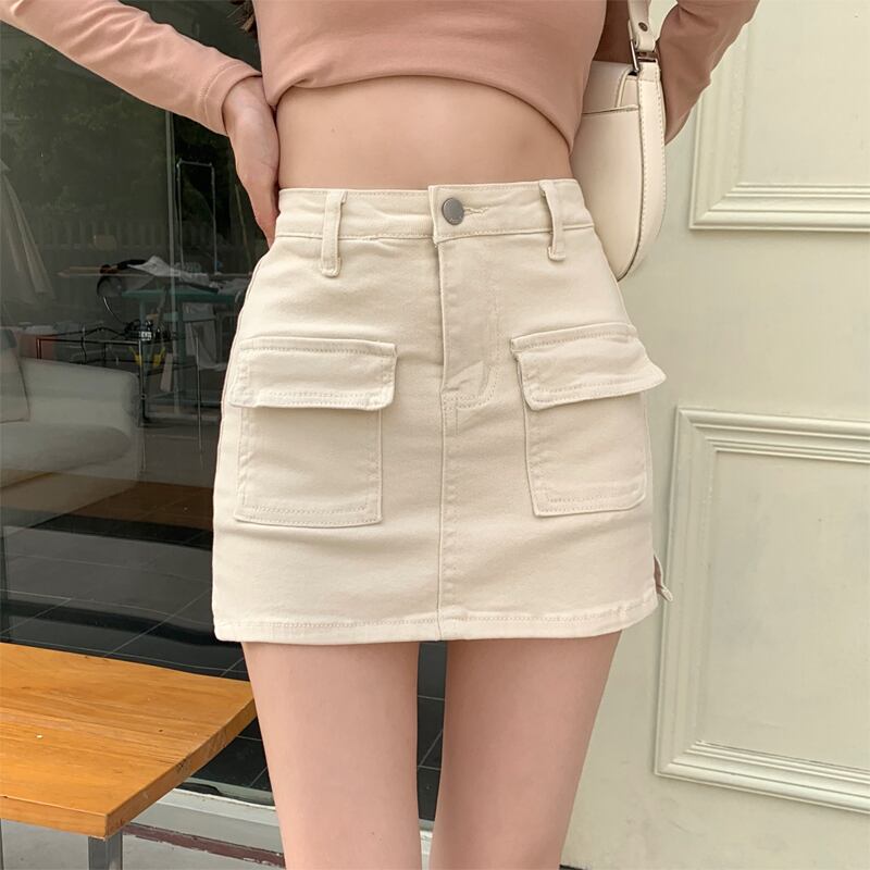 大きいサイズの婦人服 2023 春服脂肪姉妹新しいデニム スカート弾性ポケット付き薄いバッグ ヒップ スカート女性 エラスティック 伸縮 大きめサイズ スプリング 春物 8884149482523058